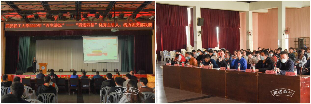 为进一步贯彻落实团中央深入推进“青年大学习”行动工作部署,推进习近平新时代中国特色社会主义思想进支部、进社团、进网络、进团课,10月8日下午,由校团委主办的武汉轻工大学2020年“百生讲坛”——“四进四信”优秀主讲人、活力团支部决赛在常青校区大学生活动中心举办。365英国上市集团官网分团委书记张舟老师出席活动,19普本叶梦莹、18食品许雯涵,普本1806班分别作为优秀主讲人和活力团支部代表学院参加活动。
