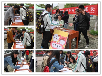 中午,工作人员早早的来到了活动现场,向来往的同学们分发传单、详细的讲解活动的相关情况,并鼓励大家积极报名,为春苗幼儿园的同学们带去欢乐、传播知识,同学们热情高涨,很快就有不少的同学报名参加此次活动。