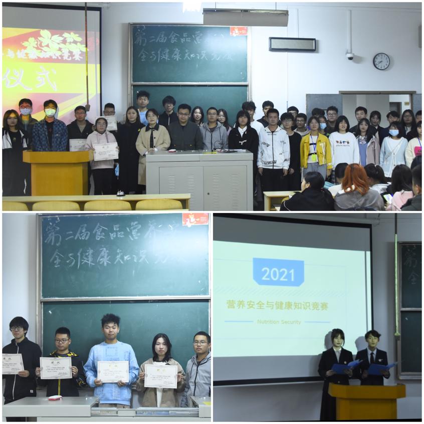 11月11日下午,食品学院2020-2021学年营养知识竞赛决赛在科教楼301成功举办,活动在食品学院院歌的MV中拉开序幕,主持人从比赛秩序、比赛流程等方面介绍了比赛的详细规则,各位参赛选手蓄势待发,场面异常激烈。决赛分为两轮,每轮每队派出三人,第一轮通过抽签采取两两PK抢答,两两PK之后积分排名前三的队伍将晋级第二轮。每队通过抢答的方式,根据第二轮每队总积分决出前三名。个人积分高的选手将获得优秀个人奖,一共七支由食品学院学生组成的队伍成功入围决赛并获得奖项和荣誉。食品学院辅导员为获奖队伍颁发了荣誉证书及奖品。