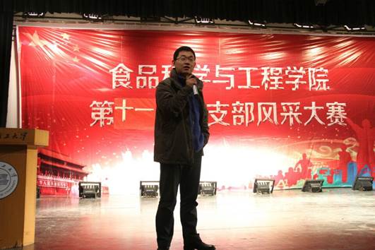 首先,两位主持人以简洁的对白拉开了大赛的帷幕。前半场各团支部进行了精彩的团支部愿景风采演讲比拼,各班的形象大使一一站在舞台中心,自信大胆的讲出团支部成员和发展规划,让所有人都看到了光明的未来,他们字字铿锵,积极向上,整场气氛激情飞扬。紧接着宣讲环节一结束便进入了有奖问答环节,随着主持人提出的问题一个一个的被抢答,同学们的热情被充分调动起来了。大赛后半场以风采展演为主,很快到了最受期待的表演环节,各团支部开始依次进行表演,有的团支部生动演绎出先辈们在战火中热爱国家、奋勇斗争、捍不畏死的精神,有的带我们回顾了那段血色的屈辱岁月让在座的所有人都记起了历史的教训、更坚定向前的决心,有的用活力十足的舞蹈秀出当代大学生的风采。比赛的最后,食品学院党委副书记易文君老师上台作总结性发言,对比赛主题的历史进行了讲解,以自身为例指出一个好集体的重要性,以及好干部与好集体相互依存的关系,提出了希望台下所有学生努力学习,做好承担食品学院未来的准备。