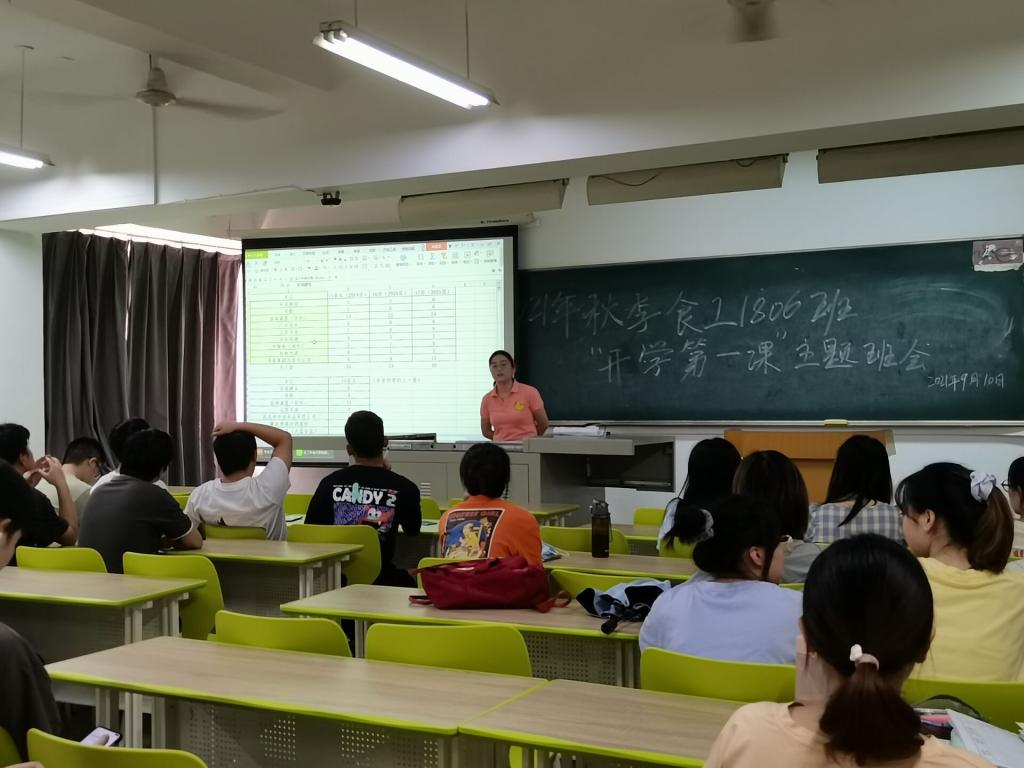 18级学生在这个金秋步入了大四年级,为了在开学伊始做好学生思想政治教育工作,加强开学安全教育,强化疫情防控意识,引导学生正确对待考研、就业压力,近日食品学院18级各班主任在各自班级开展了2021年秋季“开学第一课”主题班会。