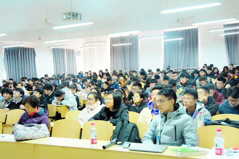 本报讯(食品学院 郑好)为加深同学们对食品专业的了解,对自己有更清晰的定位。2018年12月13日下午2:00,由食品学院主办的“高管、专家进校园”系列讲座——“80良友”校友讲坛于常青校区科教203召开。本次活动的嘉宾有中国粮油学会油脂分会副会长、深圳精益油脂技术有限公司董事长伍翔飞先生,食品学院党委书记王宏光老师,院长丁文平教授,副院长肖安红教授,副院长王学东教授以及18级辅导员牟星老师。