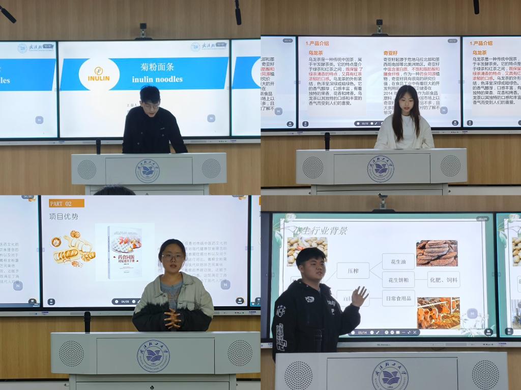 会上,各项目主讲人以精心制作的演示文稿为媒介,生动展示了参赛项目的进展情况、阶段性成果以及未来的发展前景。这些项目涵盖了食品、化妆品、纺织等多个领域,充分展现了食品学院学子们扎实的专业知识与广阔的视野。