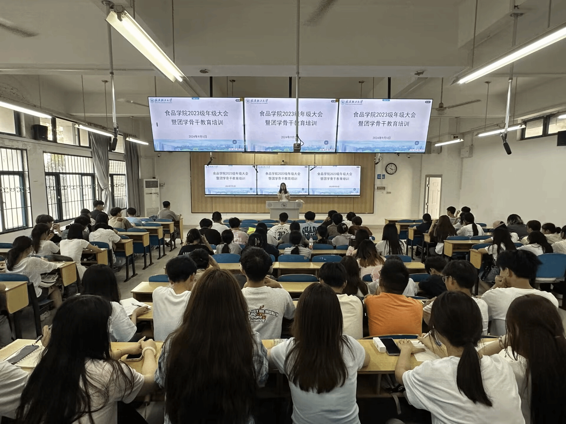 为贯彻党的二十届三中全会精神,不断提高食品学院学生干部的整体素质,强化团学组织的团队合作精神,9月5日,食品学院在砺志楼 102召开学生干部培训会。食品学院分团委书记滕雪主持会议,辅导员林振兴、主要学生干部、青马工程学员参加会议。