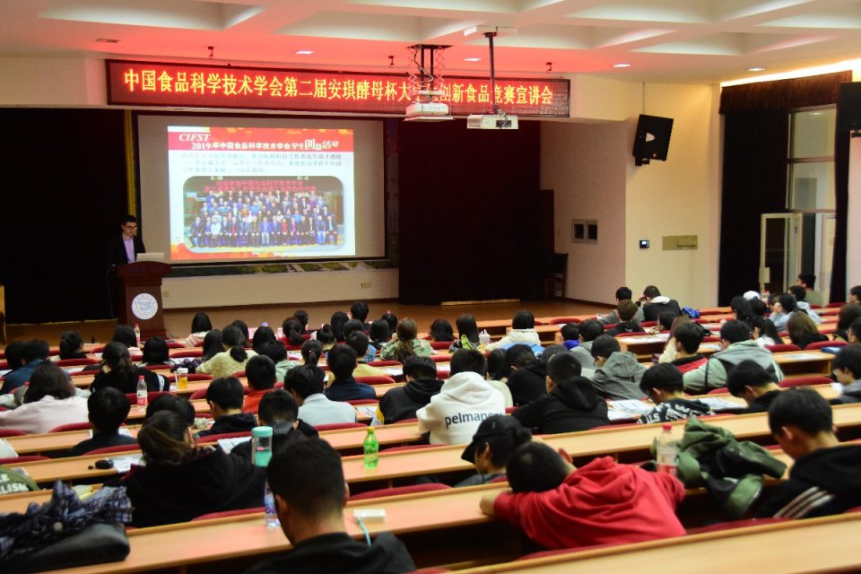本报讯(食品学院 何松洋)2019年3月21日晚,中国食品科学技术学会第二届安琪酵母杯大学生创新食品竞赛宣讲会于我校常青科学报告厅举行,中国食品科学技术学会工程师陶金亚,安琪酵母股份有限公司技术部长陈晖,安琪酵母股份有限公司团委副书记李可可,以及食品学院18级辅导员牟星参加了本次宣讲会。