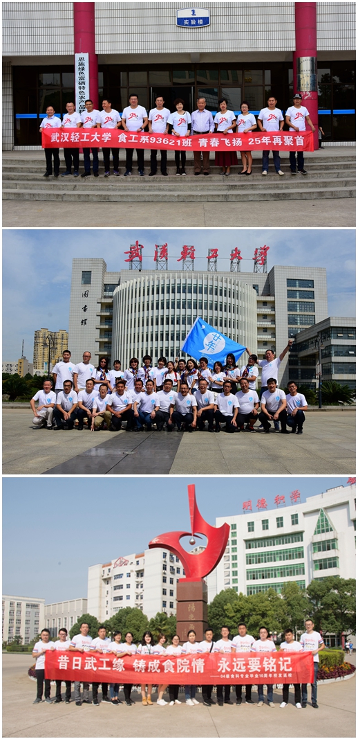本报讯(食品学院 王寅竹 杨维娜)为进一步加强校友与母校之间的联系,促进各地区校友之间的沟通与交流。国庆节期间,食品学院93级、94级和04级校友分别于10月2日和6日回归看望母校武汉轻工大学。在食品学院学生会外联部对工作的积极配合下,食品学院分党委书记王宏光、副书记易文君等老师热情接待了他们。