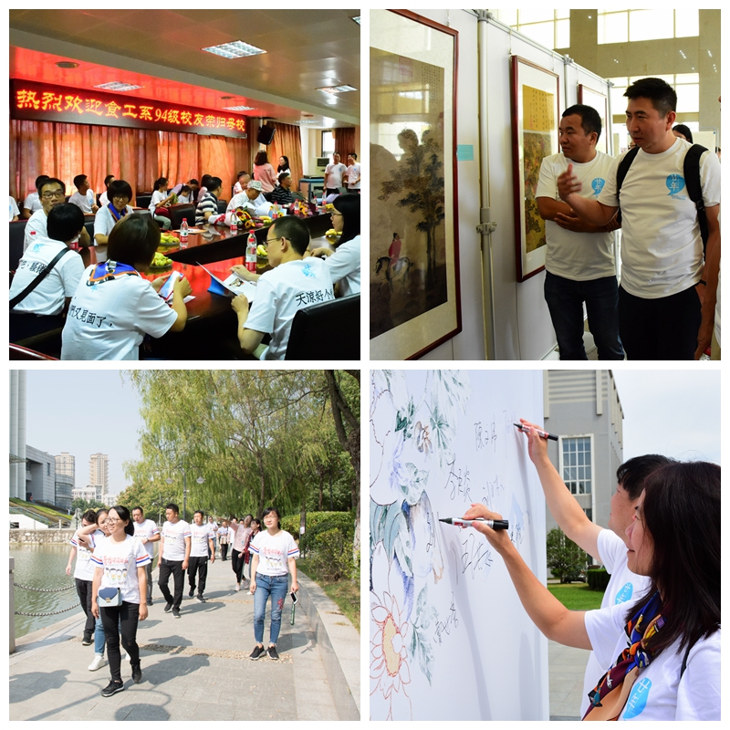 各级校友返校当日上午,由王书记组织并开展了迎接事宜。人员到齐后,一众校友落座食品科技楼,并展开交流会,伴随着PPT的放映,讨论往昔旧事与今日成就,几多唏嘘,叹流光易逝。及至下午,大家共同前往金银湖校区参观图书馆的书画展,见证了常青校区近年来的变化。“雕栏玉砌应犹在,只是朱颜改”,时光流转,看着母校的变化,校友们纷纷在宿舍、餐厅、湖心亭、实验楼、阳光雨露等地点拍照记录这些珍贵瞬间,并在签名墙上签下名字,写下了对母校的感恩与怀念,留下了对在校学子的期望。此外,他们还为老师送去了鲜花,献上了真挚的祝福。参天之树,必有其根;环山之水,必有其源。活动最后,校友们表示日后定会常回母校,积极参加母校2021年的“70周年”校庆;院方也表示永远热情欢迎校友的回归和看望,并希望以此方式促进食品学院向更高更远的方向发展。