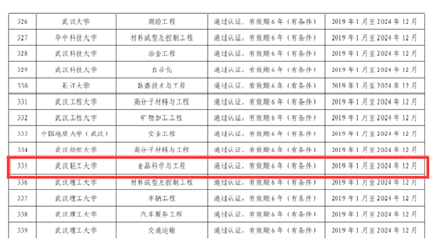 食品科学与工程专业是我校历史上第一次申报,并一次性通过工程教育认证的工科专业,同时也是湖北省第一个通过该认证的食品类工科专业。目前,湖北省仅有两所高校的食品科学与工程专业通过认证,我校是其中之一。