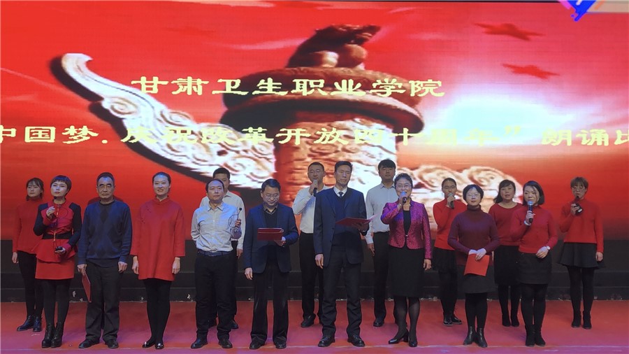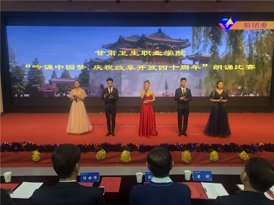 为庆祝改革开放四十周年,丰富校园文化生活,激发广大青年的爱国主义热情,增强爱国意识,引导广大团员青年积极弘扬社会主义核心价值观,树立坚定的理想信念。12月13日晚,学校团委举行“吟诵中国梦·庆祝改革开放四十周年”朗诵比赛活动。校领导刘生肸、任世伟、黄刚、赵建泽及500余名师生代表共同观看演出。