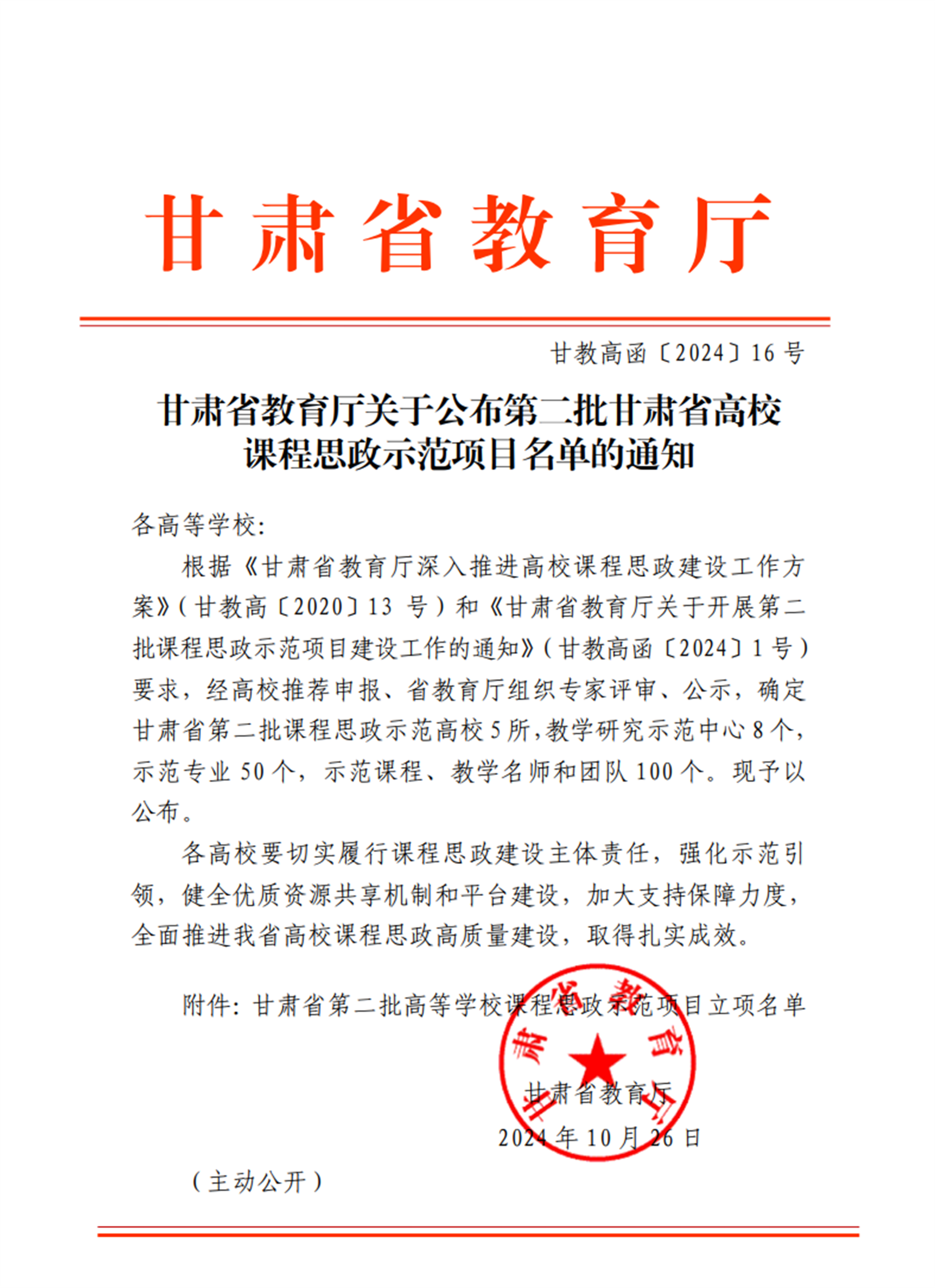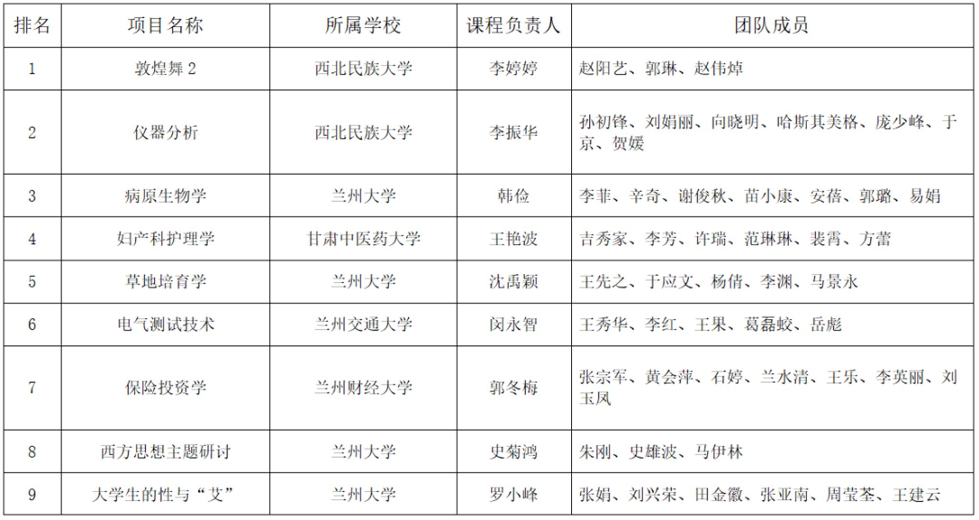 甘肃省第二批高校课程思政示范项目拟立项名单(部分)