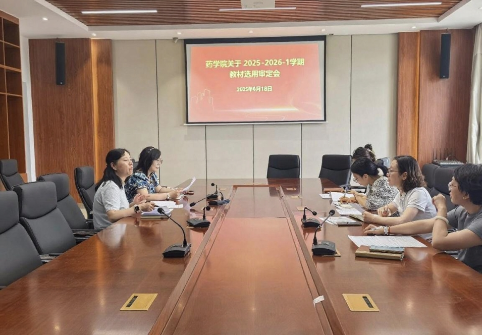 6月18日,药学院组织召开新学期教材选用审定会,学院教材建设与管理委员会成员及教研室主任参会。
