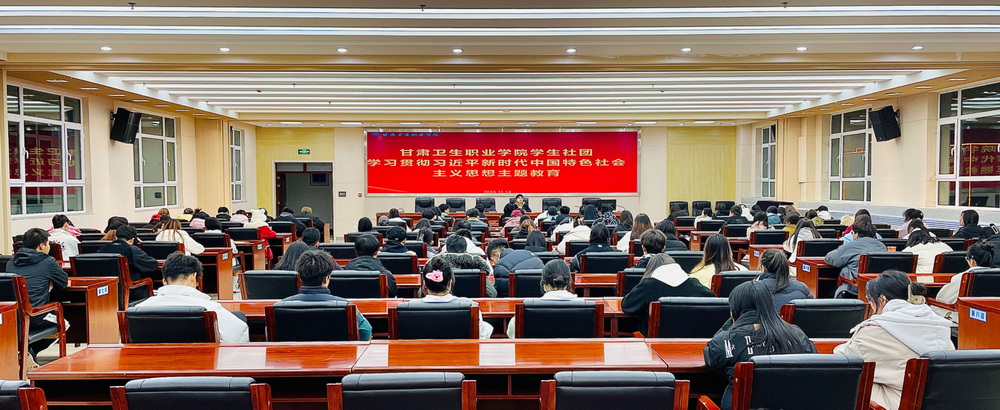 为深入学习贯彻习近平新时代中国特色社会主义思想,贯彻落实党的二十大精神,进一步提升社团成员政治素养、理论水平和工作能力,持续推动党史学习教育在社团成员中走深走实,11月14日晚,校团委在学校行政办公楼8楼会议室组织开展了学习贯彻习近平新时代中国特色社会主义思想主题教育,各社团负责人及社团成员代表200余人参会,团委书记衡冰主持会议。会上,衡冰宣读了《共青团甘肃卫生职业学院委员会开展学习贯彻习近平新时代中国特色社会主义思想主题教育工作方案》,对下一步在学生社团中开展系列主题教育活动做了相关安排。希望各社团要对照要求、对准目标,坚定理想信念、发扬斗争精神、勇于担当,坚定不移听党话、跟党走。