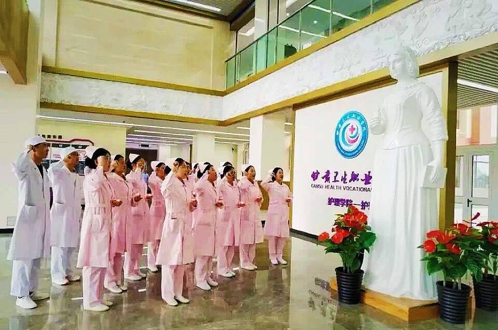 学院护理实训基地是首批全国护理专业技能型紧缺人才示范培训基地、首批全国职业院校健康服务类示范专业点、甘肃省首个国家卫生健康委人才交流中心医疗护理员培训基地。实训基地占地面积约2万平米,设施齐全,环境优雅,是集职业性、先进性、整体性、开放性及信息化为一体的现代化实训基地,同时具备教学、科研、技能竞赛、社会培训、技术服务和职业鉴定等多重功能。实训基地模拟医院布局,包含所有护理岗位实训场地,如普通病房、儿科病房、老年照护病房、手术室、产房、ICU、门急诊等,配有先进的信息化教学设备,如示教-反示教系统、“一老一小”虚拟仿真实训系统、理实一体化多媒体教室等。 学院始终坚持以党建工作为指引,秉承“立德树人、仁爱精诚”的培养理念,立足专业,致力于培养具备高度责任心、高尚职业道德、精湛专业技能、深厚人文情怀以及强烈社会责任感和服务意识的应用型高素质人才。