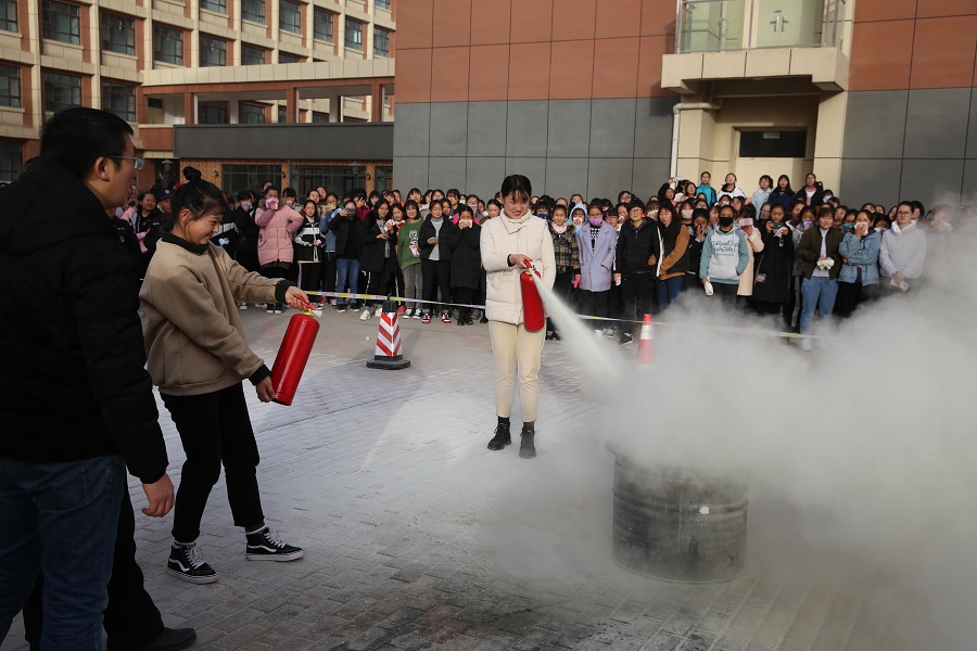 在灭火器的使用方法、如何防火以及如何报警等相关问题上,学校保卫处老师现场做了详细的讲解。教职员工、学生、安保人员依次对灭火器进行了实际操作,在实际演练中进一步加深了对消防知识的理解,提高了运用消防设施的能力。