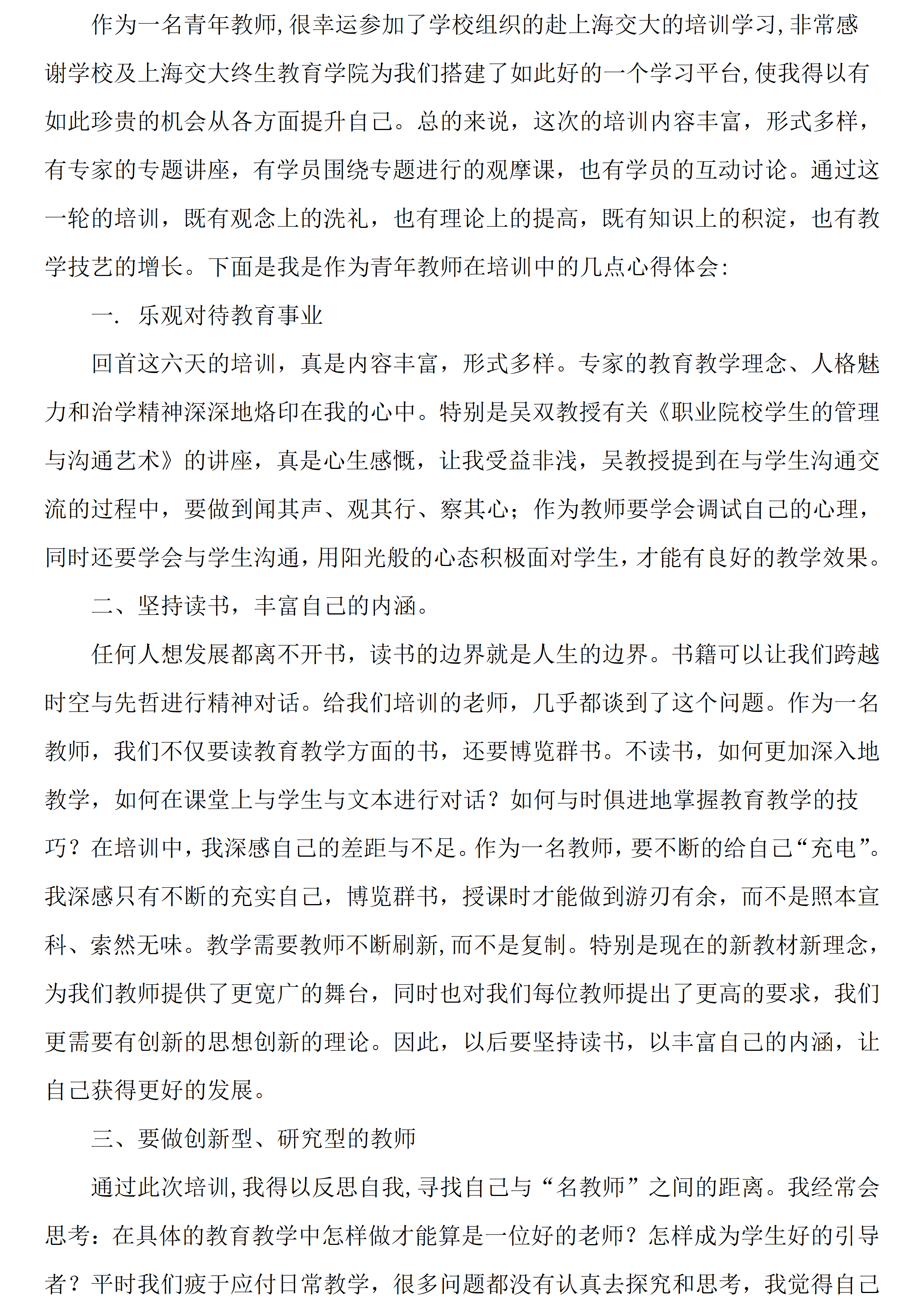 【上海交通大学培训心得】张骞誉:做创新型、研究型的教师