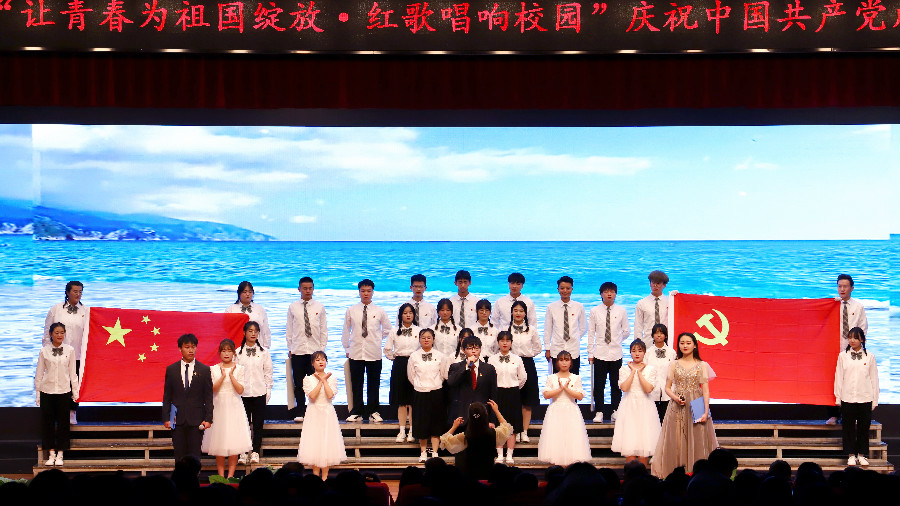 经过各学院初赛选拔推荐,校团委审核确定了15个节目参加比赛。本次活动以习近平新时代中国特色社会主义思想为指导,全面贯彻党的十九大和十九届二中、三中、四中、五中全会精神, 围绕建党100周年这条主线,强化党史学习教育,全面展现了中国共产党带领全国各族人民同心同德、砥砺前行所取得的辉煌成就;大力弘扬了以爱国主义为核心的伟大民族精神,唱响时代主旋律,激发爱党、爱国热情,展示了全校师生干事创业、奋发向上的精神风貌;大力营造了万众一心、共同追梦的浓厚氛围。活动中,全体团委干部合唱了歌曲《不忘初心》,在场全体人员起立合唱了《没有共产党就没有新中国》,党旗和国旗随着歌声在全场摇动。