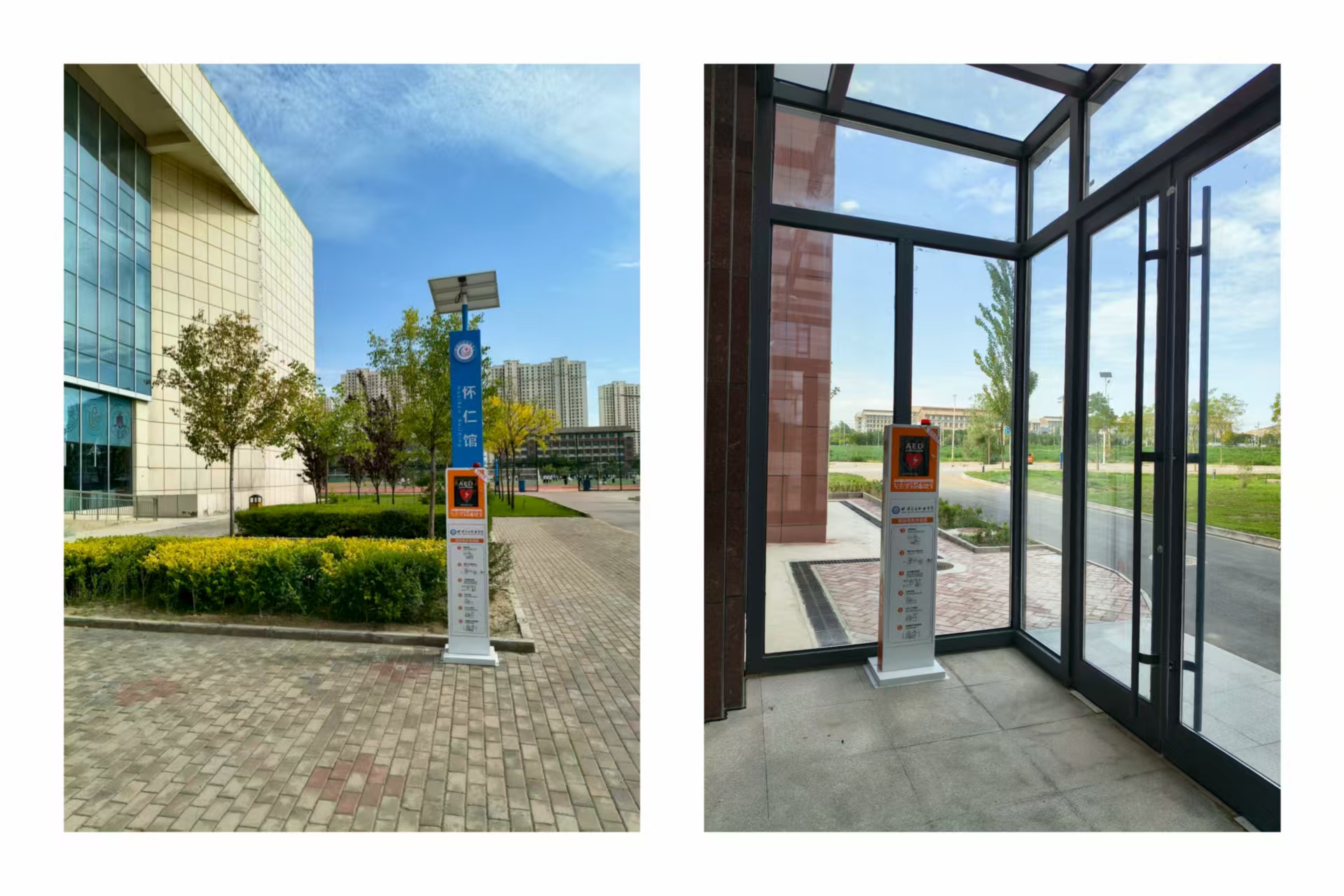 此次安装的15台AED覆盖了校园主要区域,分别设置在教学楼、实训楼、图书馆、学生公寓、体育场馆和食堂等人群集中场所,设备已全部调试完毕,可随时启用。