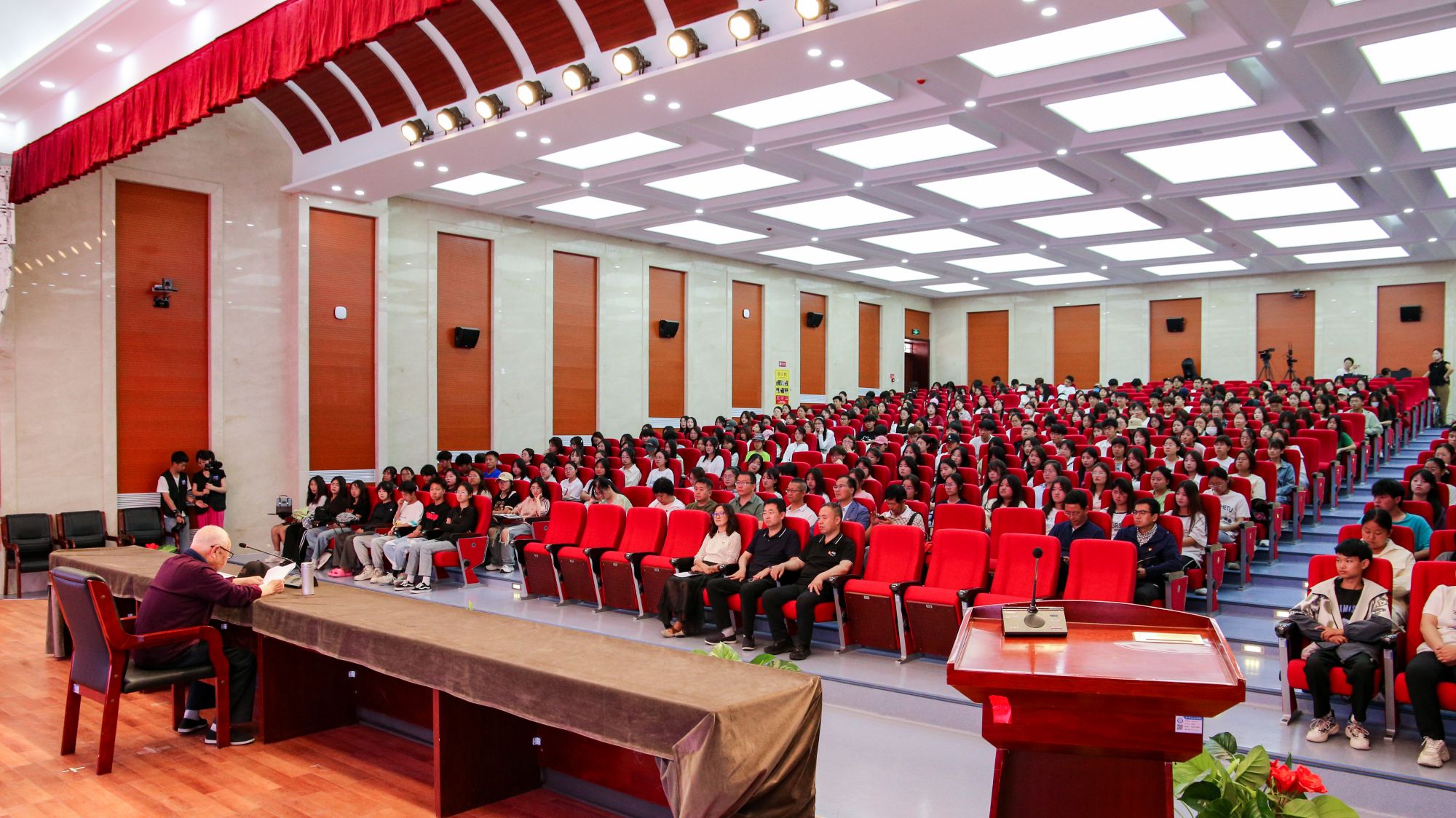 6月28日下午,学校党纪学习教育暨高校廉洁教育毕业最后一课在1号教学楼学术报告厅举行,会议邀请抗美援朝独立33师老战士、原甘肃医药学校校长吴再衡作专题报告。校长王建成,党委副书记毕效武,副校长杨频,各党总支书记、党支部书记、毕业生代表400余人参加会议。其他教职工、学生通过学校微信公众号观看直播。