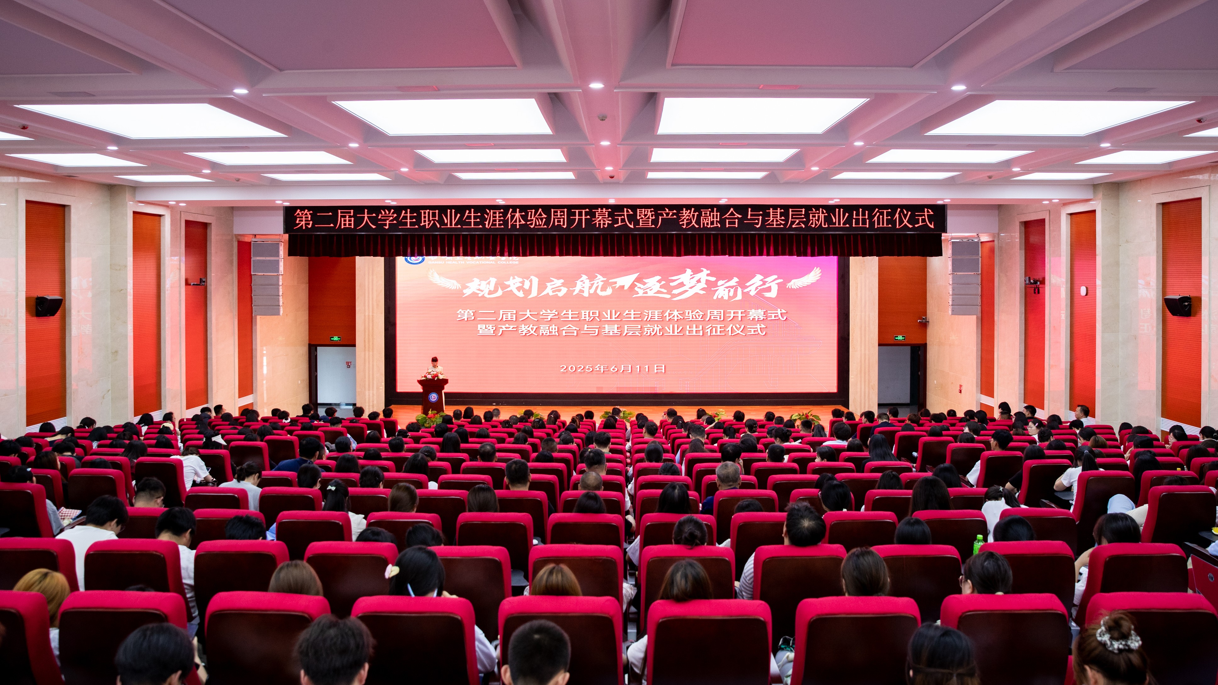 6月11日下午,学校在笃学楼学术报告厅隆重举行第二届大学生职业生涯体验周开幕式暨产教融合与基层就业出征仪式。在家校领导、二级学院行政人员、辅导员及学生代表齐聚一堂,共同见证这一育人实践重要时刻。
