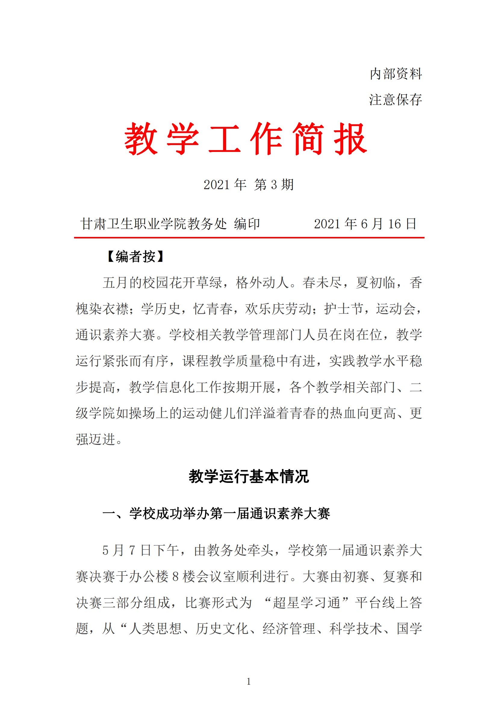2021年5月份教学工作简报