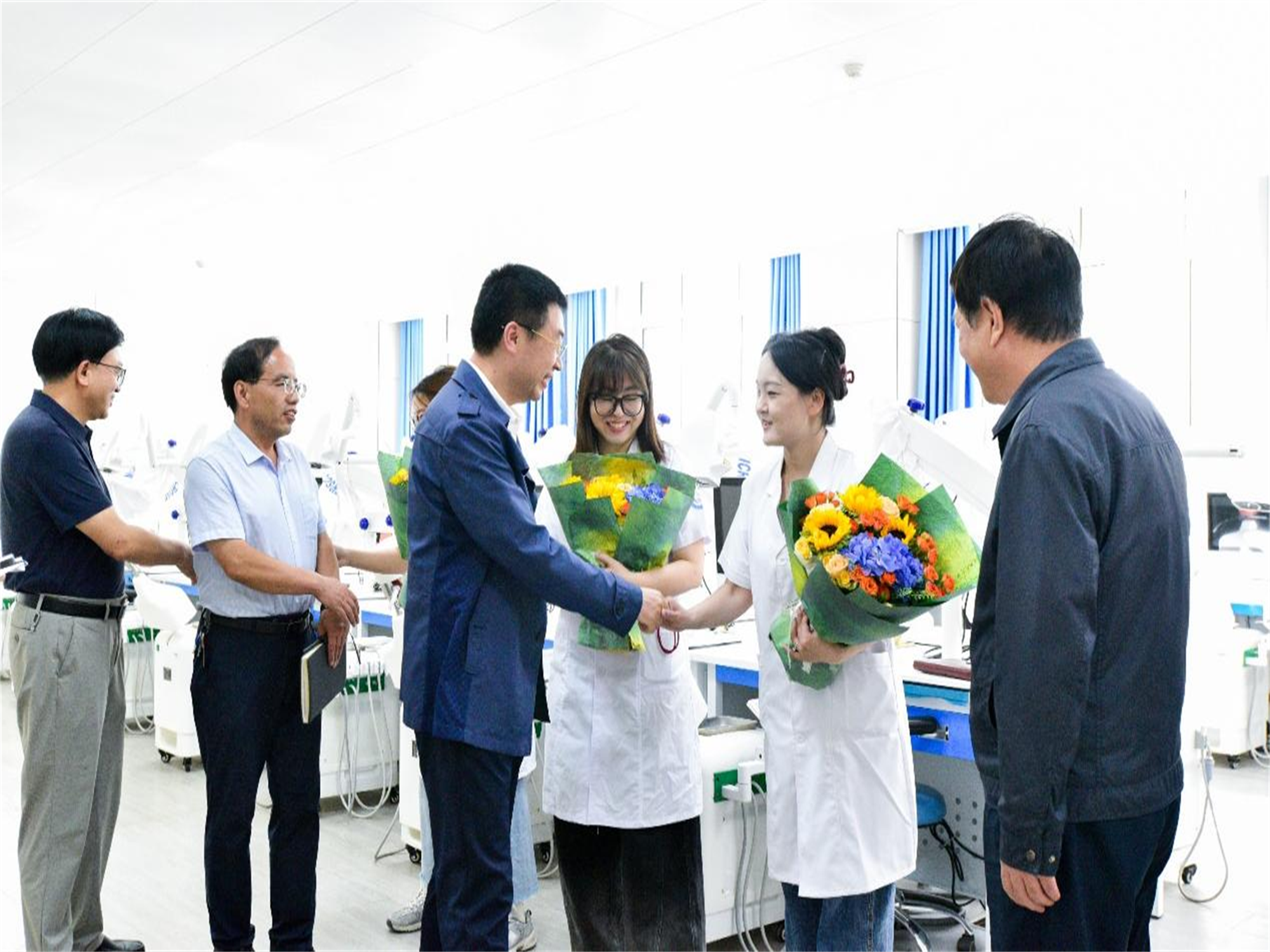 院领导与教师代表们深入交流,详细了解他们的教学工作、生活情况以及在教育教学中遇到的困难和需求,充分肯定他们以生为本、潜心育人的高尚情操,感谢他们为学校发展和人才培养所做出的贡献,并鼓励教师们在今后的工作中继续努力,不断提升教育教学质量,培养更多高素质医学技能人才。