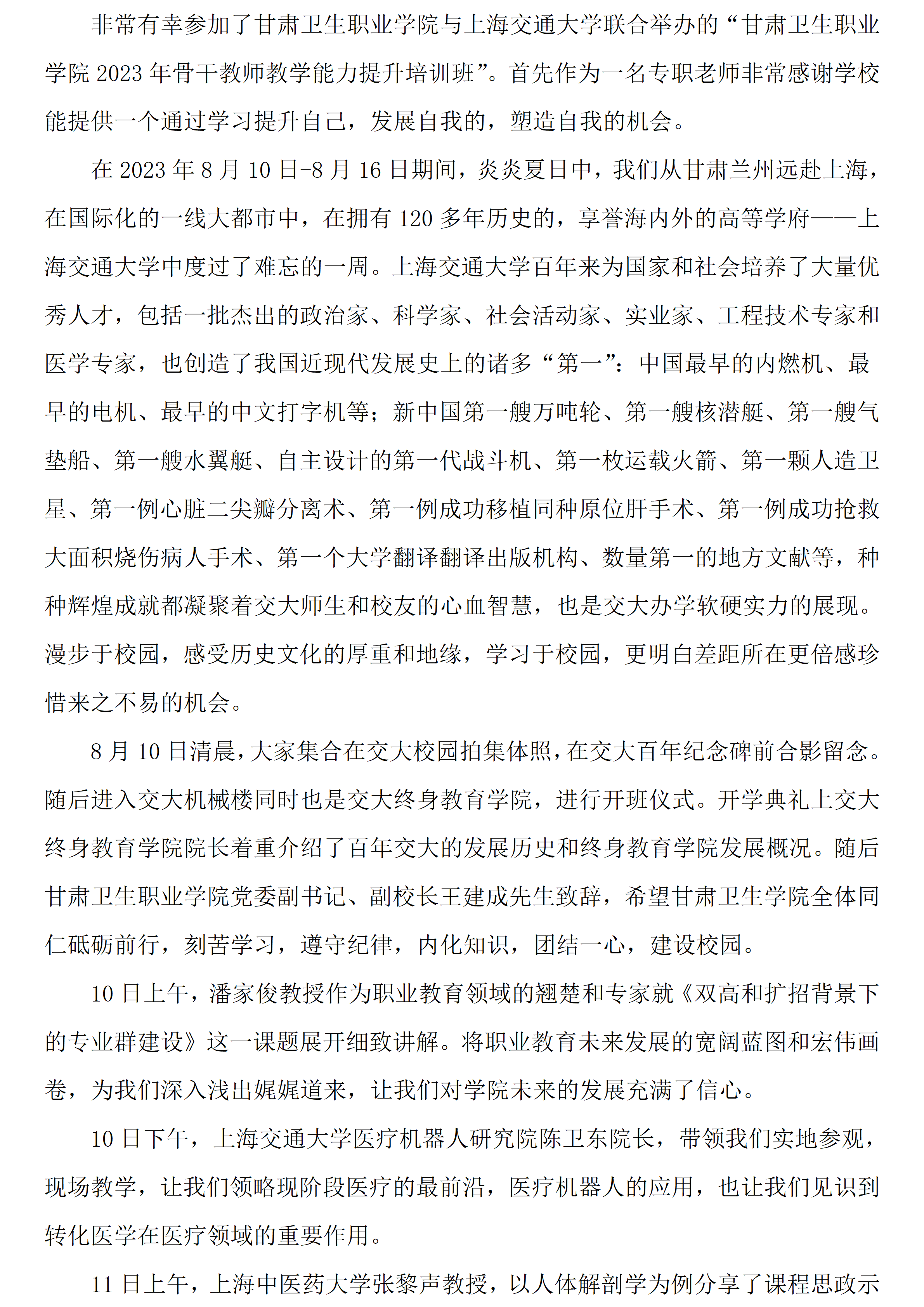 【上海交通大学培训心得】杨清源:明确目标、树立信心、提升素养