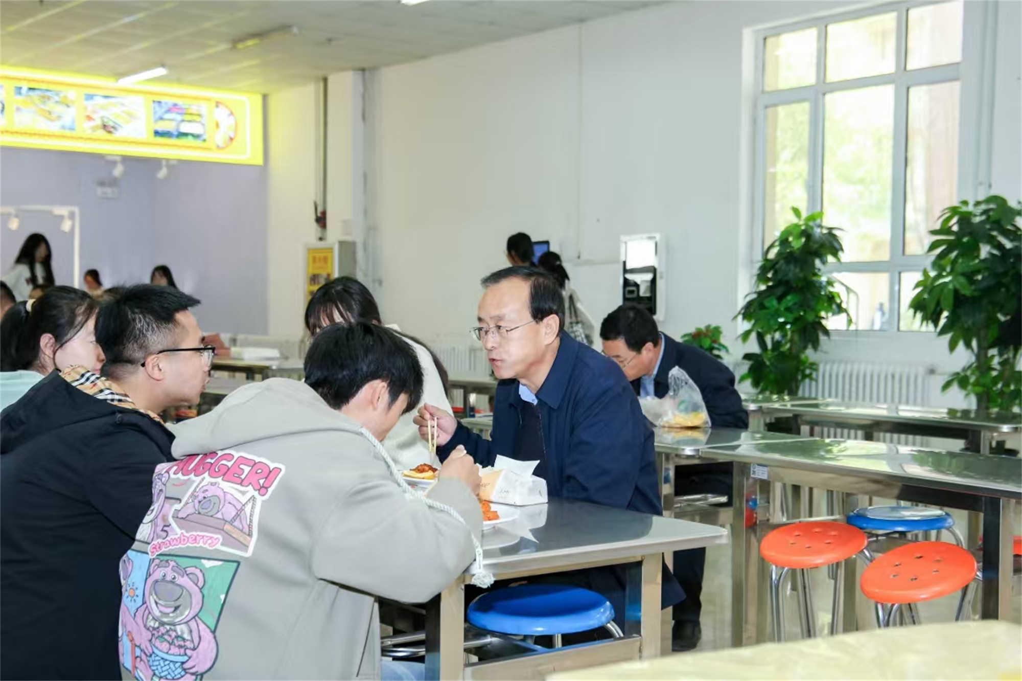 学校领导深入食堂与学生共餐