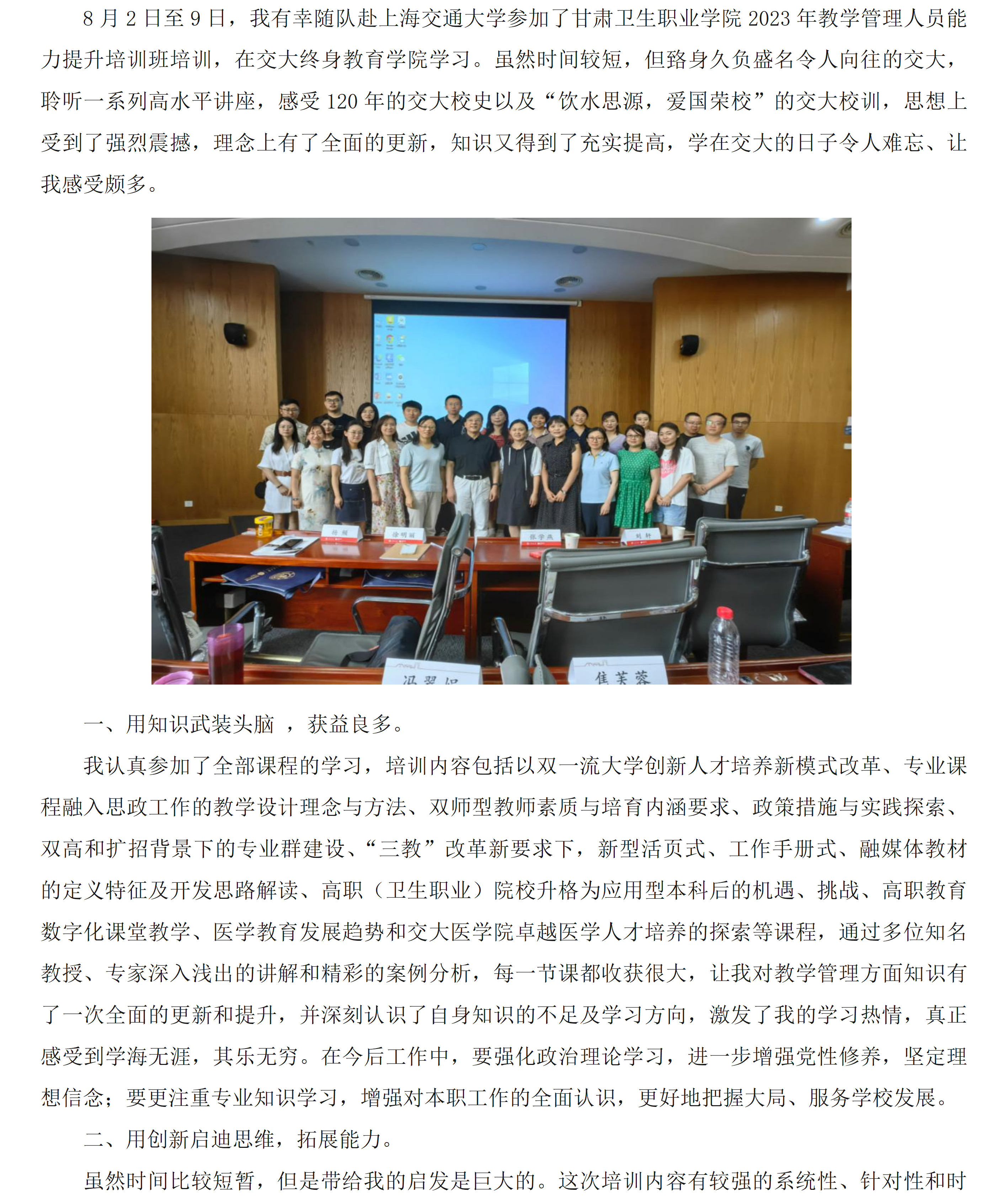 【上海交通大学培训心得】焦芙蓉:密切联系工作实际,消化吸收学习成果