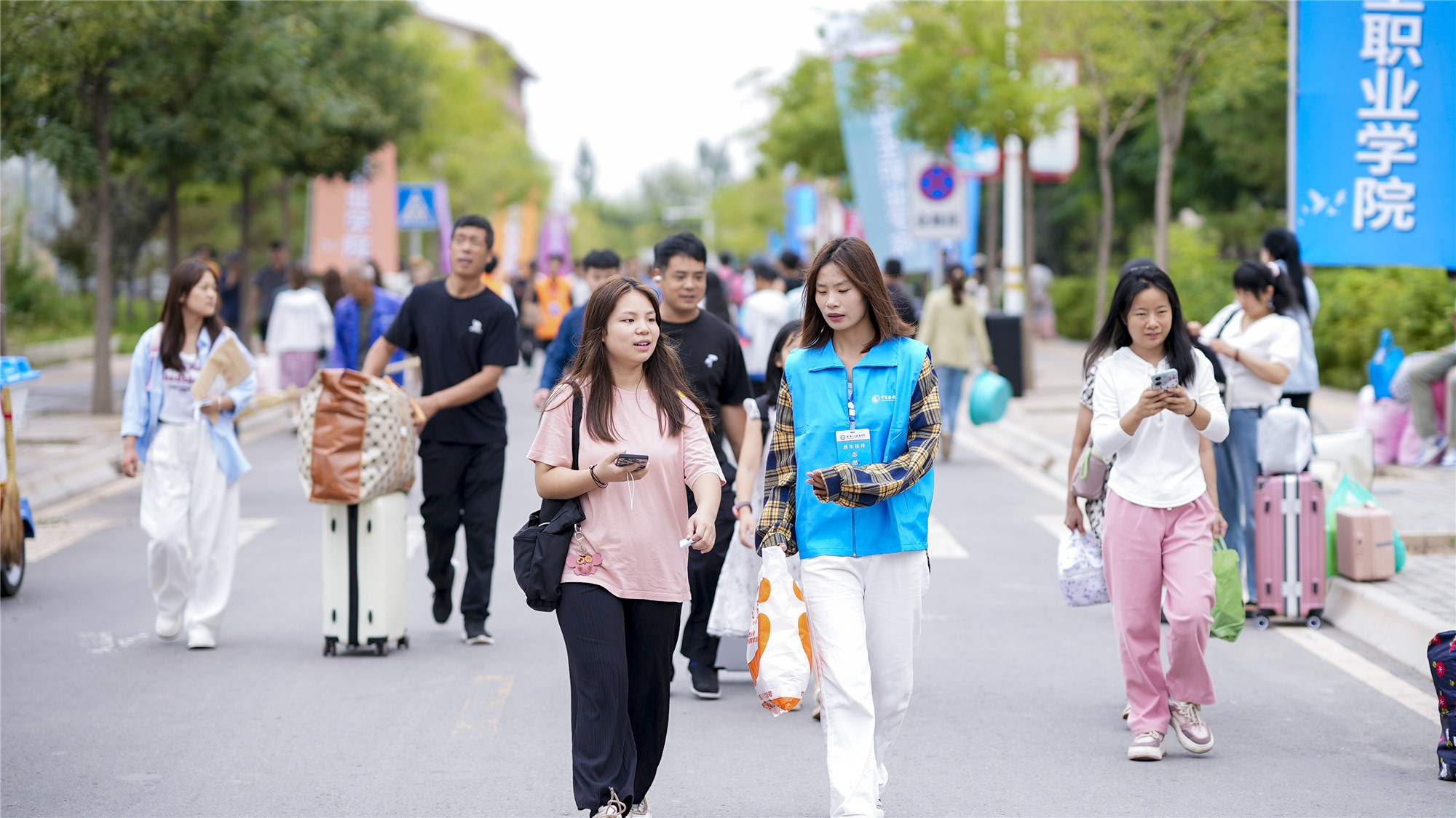 报到当天,学校专程在兰州火车东站、西客站、飞机场、职教园区客运中心设置了校外迎新站点,接待新生和家长,并安排大巴转运至职教园区学校报到点。