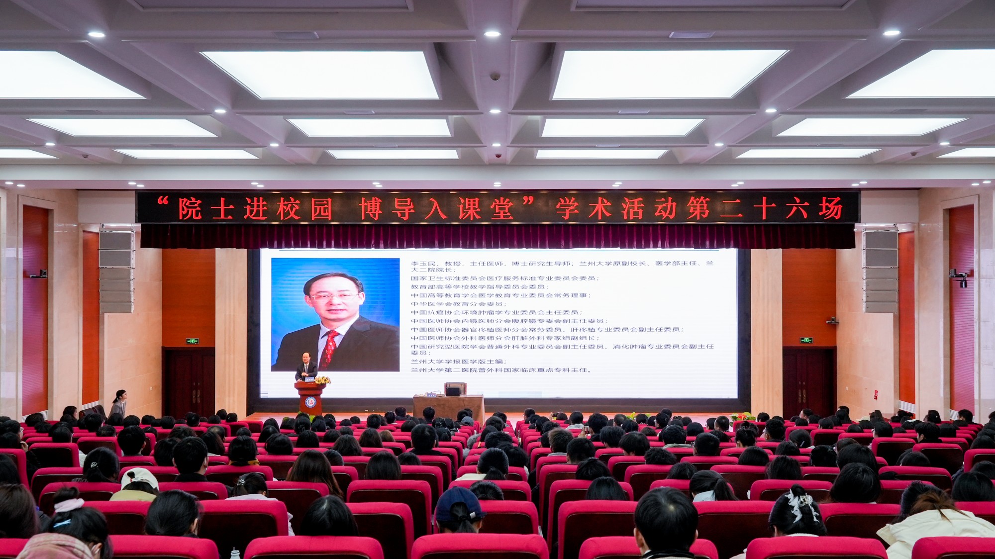 12月31日,学校科技讲坛“院士进校园 博导入课堂”系列学术活动第二十六场讲座在笃学楼多功能报告厅圆满举行。本次讲座特邀兰州大学萃英二级教授、主任医师、博士研究生导师、英国剑桥大学访问学者李玉民教授,为365英国上市集团官网师生带来了一场以“厚德精医树人 博学笃行育才”为主题的学术盛宴。学校包磊书记、王建成校长、张军荣副校长及中青年教科研骨干教师、学生代表等400余人参加了此次讲座,活动由副校长张军荣主持。