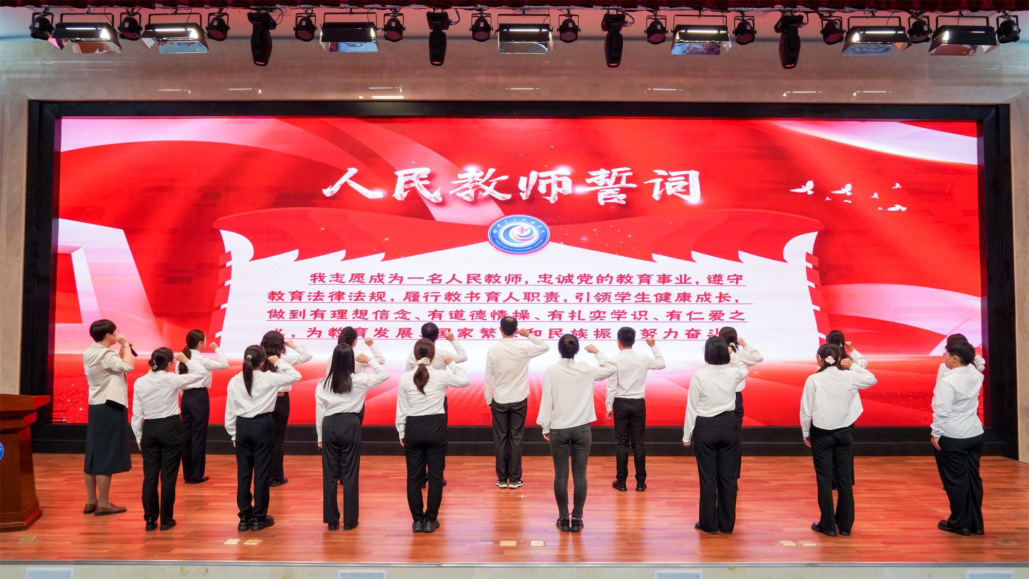 最后,党委书记包磊代表学校党委向默默耕耘、无私奉献的广大教职员工致以节日的问候和崇高的敬意,向受到表彰的先进集体和个人表示热烈祝贺。他赞扬了新入职教师的激情和决心,肯定了在职教师的奉献和成就,以及退休教师的贡献和精神。包磊指出,卫职院因医而名、因医而荣、因师而兴。学校发展正面临着新形势、新阶段、新目标、新要求,面对新的发展机遇,学校正以“锐意改革、矢志跨越”的责任使命和敢于担当的勇气,坚持把教师作为学校发展第一资源,努力形成广大教师尽展其才、高素质专业化创新型教师队伍不断涌现的良好局面。他提出了几点希望与老师们共勉:一是胸怀红色印记,做永远跟党走的教师;二是涵养高尚师德,铺就最美职业底色;三是大兴笃学之风,锤炼高超娴熟师艺;四是紧扣时代脉搏,不断提高新质素养。最后,他表示学校今后将始终坚守教师为立校之本、兴校之源这一本质,大力弘扬尊师重教风尚,用心用情用力做好教师管理服务和培训培养工作,让广大教师安心从教、热心从教、舒心从教。