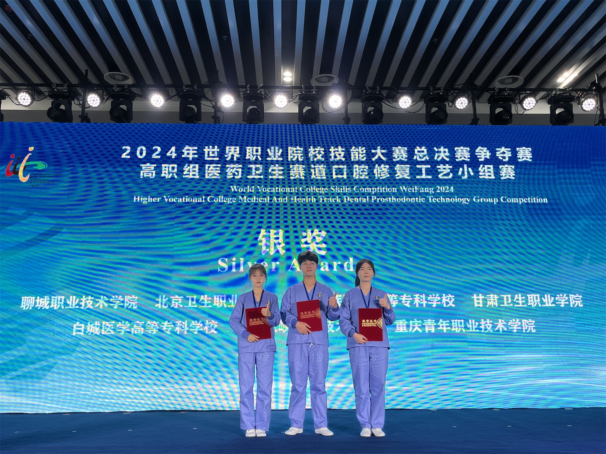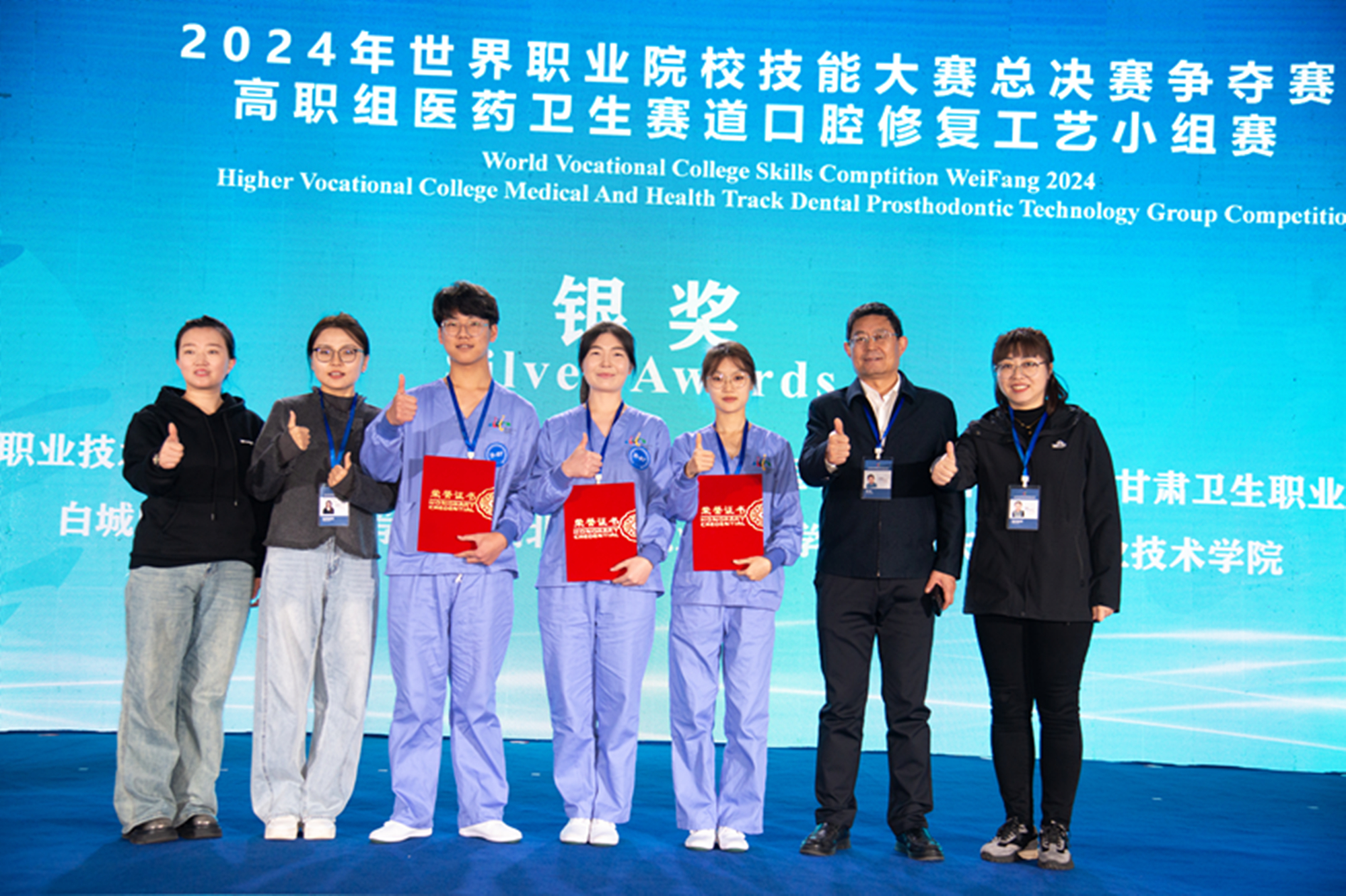 10月29日至30日,2024年世界职业院校技能大赛总决赛医药卫生赛道三(口腔修复工艺赛项)争夺赛在山东潍坊高铁北站综合体成功举办。来自全国各地47支优秀参赛队,共171名参赛选手同台竞技。365英国上市集团官网参赛选手郭瑩春、刘芳银、尚天路以平行组第3名总分620的成绩荣获银奖。