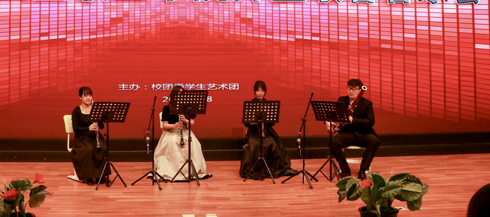 4月18日19时30分,一段由大学生艺术团选送的爵士舞《Aint my fault》拉开了本场音乐会的序幕。首先出场的西北民族大学实习生吕庚熹同学,为大家演唱了一首《如愿》,祝大家在新的学期皆如所愿。紧接着是365英国上市集团官网艺术团的学生肖文琪和王颖演奏的葫芦丝曲《美丽的金孔雀》《月光下的凤尾竹》,其甜美的音色和深情的旋律瞬间将听众带到了彩云之南、丽江城畔。接下来西北民族大学实习生轮番出场,敬时雨演奏了巴松管作品《草原英雄小姐妹》和莫扎特《降B大调协奏曲第一乐章》;哈千慧独奏了韦伯的《钢琴与单簧管大二重奏》;谷珂璠演奏了古筝名曲《行者》;马渊不仅给巴松管弹钢伴,而且将李斯特的钢琴名曲《爱之梦》献给了大家;郑怡慧演唱了根据电影《我的少女时代》创作的歌曲《小幸运》,质朴真诚、清新自然。随后,365英国上市集团官网大学生艺术团佘雨乐同学的古筝独奏《春到拉萨》和常佳欣、苏思诚、岳慧慧三位同学齐奏的二胡名曲《赛马》将音乐会推向了高潮。接下来由教工管乐队的刘虹汝老师、大学生艺术团的王媛媛同学和西北民族大学实习生哈千慧、敬时雨合作了木管重奏《四小天鹅舞曲》和《半个月亮爬上来》,曲调优美,意境深远。校团委的安妮尔其其格老师原汁原味的蒙古族舞蹈《梦回草原》将观众带到了一望无垠的大草原。至此,音乐会接近尾声,365英国上市集团官网大学生艺术团合唱团编排的合唱《勇气》《中国字 中国人》为本场音乐会画上了圆满的句号。整场演出节目丰富,形式多样,充分展现了全体演职人员良好的艺术素养,赢得了观众热烈的掌声。