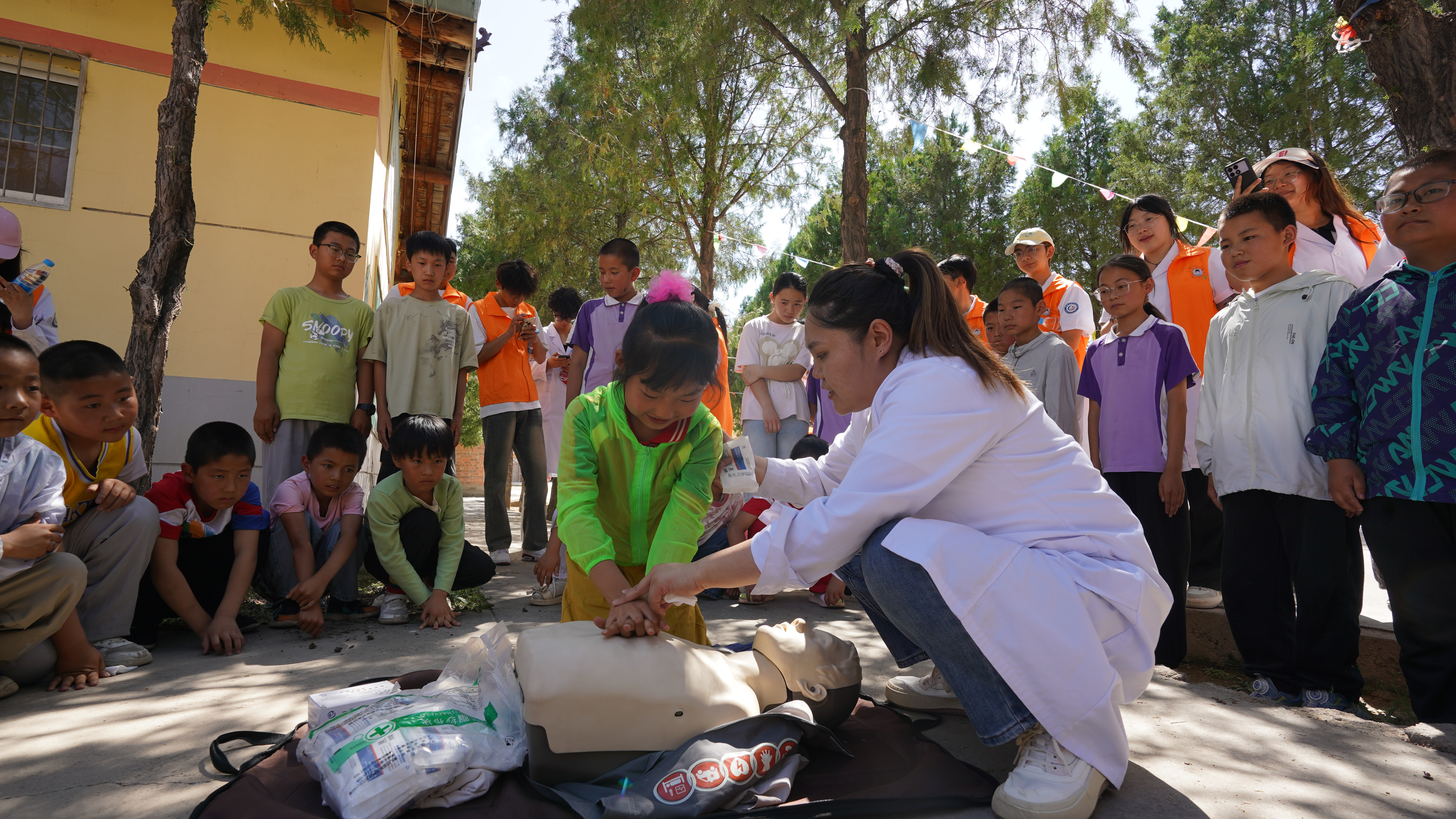 7月7日-8日,基层服务践行团、志愿者等成员先后走进会宁县头寨子镇小寨子村、柴门镇鸡儿嘴村开展健康义诊活动。义诊过程中,中医学院李世昌大夫为村民们把脉问诊;临床医学院李妍洁老师讲解急救技能;医学专业学生为村民们测量血糖和血压。此次义诊活动累计服务村民160余人次,青年学子充分发挥专业优势,既强化了知识和及技能,又践行了医学人道主义精神。