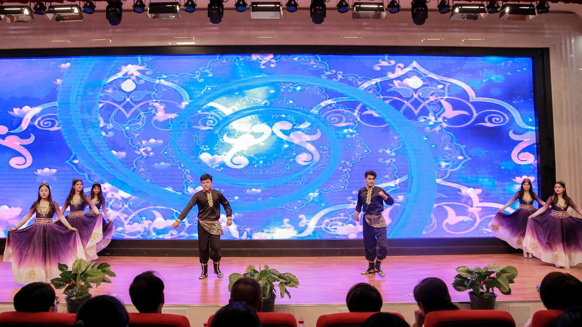 6月13日晚,学校在1号教学楼报告厅举行了“和美陇原 同心筑梦”民族团结主题晚会。学校党委副书记毕效武、纪委书记刘斌与师生代表一同观看演出。在学校参加全省医养结合人才能力提升培训班的学员应邀观看演出。