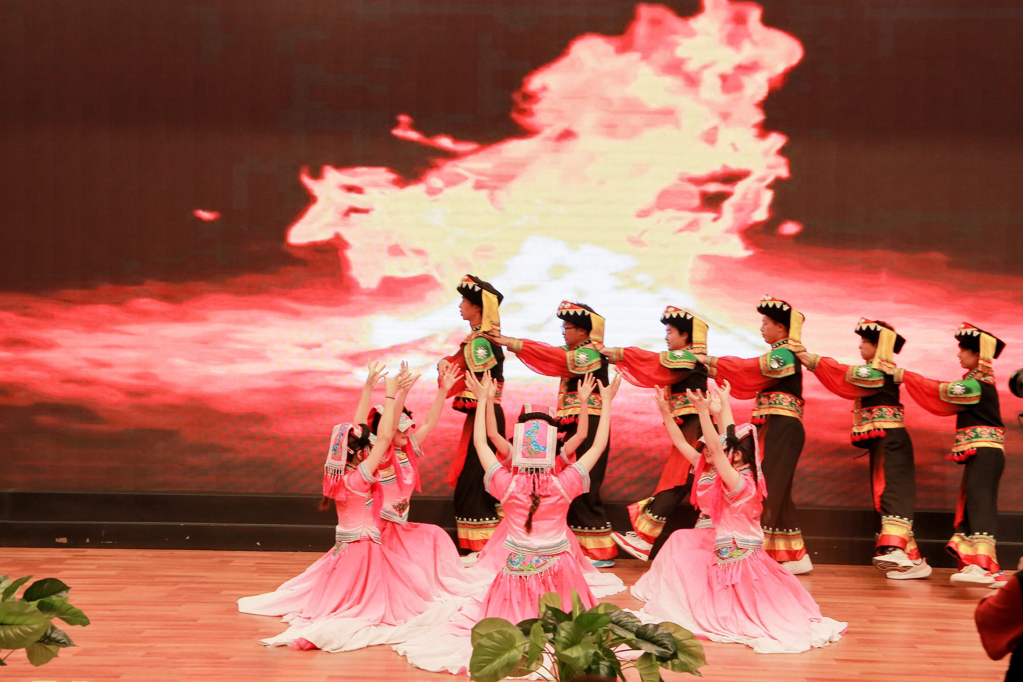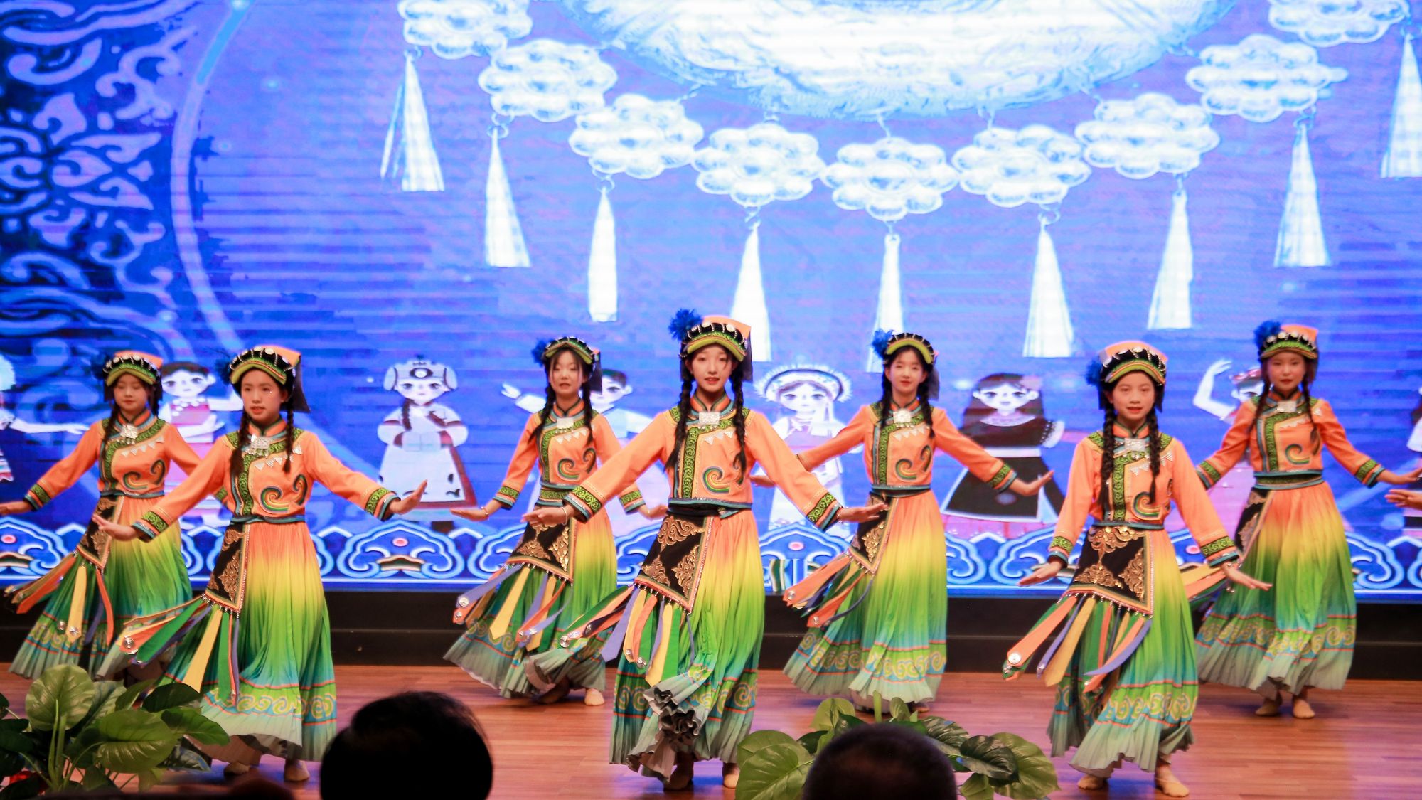演出在开场舞《同心旋舞·维吾尔风情》中拉开帷幕,来自新疆的少数民族同学们身着特色服饰翩翩起舞,展现出一幅民族团结一家亲的美好画卷。《弥勒山歌》《草原欢歌》《七月的火把节》《蒙族串烧》《吉祥》《一梦回敦煌》等舞蹈充满浓郁的民族风情,呈现出各民族手挽手、肩并肩同心筑梦的动人图景。《乌兰巴托的夜》《藏歌联唱》等歌曲唱出了民族团结动人的旋律,主题演讲《石榴花开别样红》“颂”出了民族精神,诠释各民族青年永远跟党走、奋进新征程的坚定信念,抒发了对党、对祖国、对中国特色社会主义事业的忠诚与热爱。为提升大家的铸牢中华民族共同体意识,晚会还在表演中穿插了铸牢中华民族共同体意识知识竞答环节。最后,整场演出在大合唱《相亲相爱一家人》的悠扬歌声中落下帷幕。