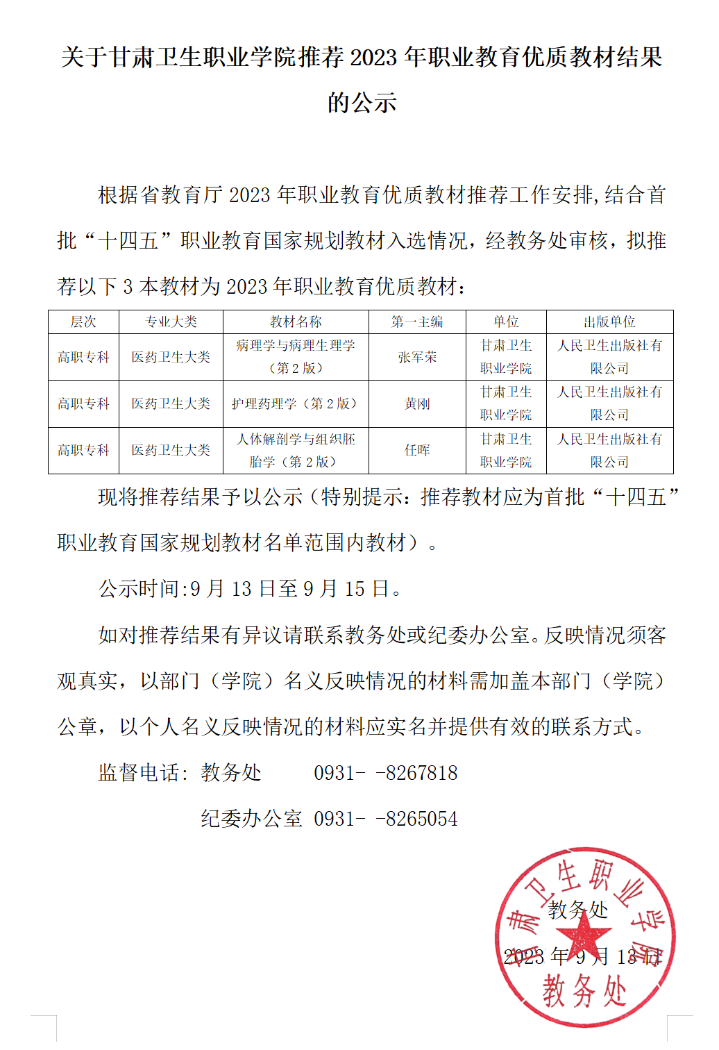 关于365英国上市集团官网推荐2023年职业教育优质教材结果的公示发布时间:2023-09-12