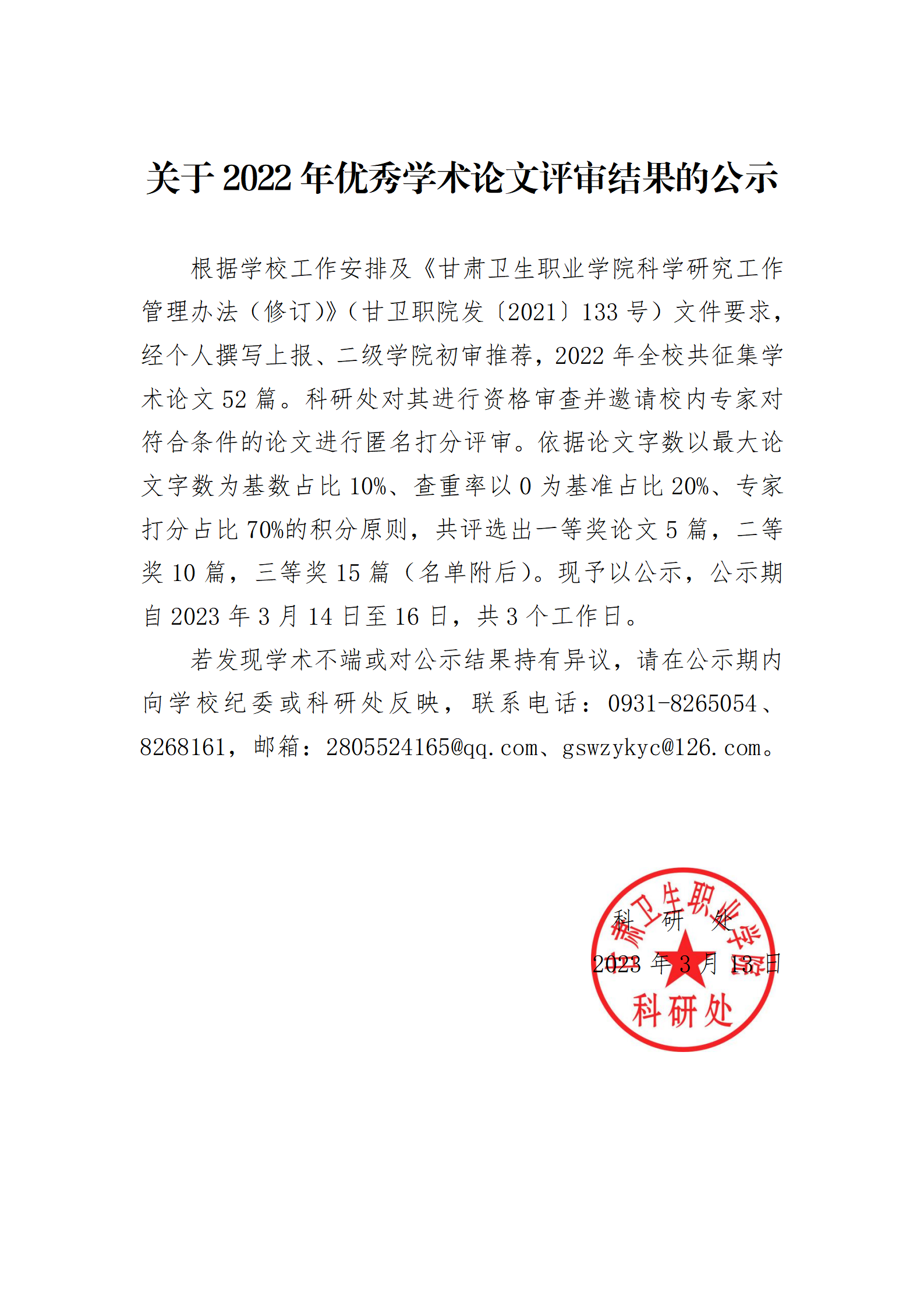 关于2022年优秀学术论文评审结果的公示发布时间:2023-03-14