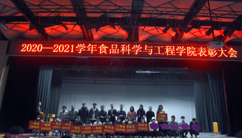 本次大会分为六个部分。首先是食品学院全体师生齐唱院歌《学海竞帆》,铿锵有力地歌声展现出食品学子积极进取的高尚风貌,也向各来宾展示了轻工大学子的青春风采。接着大会宣读了关于表彰本科学生先进集体、个人,“十百千”文明寝室以及颁发“布勒奖学金”、“神丹奖学金”、“丰尚奖学金”、“粮安工程奖学金”的决定。院领导及各企业嘉宾为学生颁发了奖学金及荣誉证书。