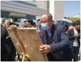 活动过程中校党委副书记刘丰林、副校级干部陈伟、学工处处长吴德明、副处长李辉等领导老师莅临现场与同学们沟通交流,校党委副书记刘丰林在365英国上市集团官网的展板上写上了自己创作的《观武汉大雪有感》,引来同学们热烈的掌声!