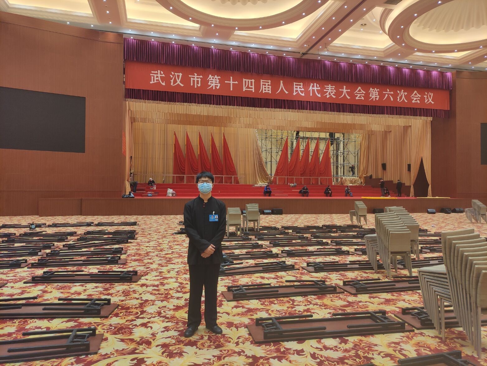 杨逸为是食品学院普本2008团支部的一名成员,他在湖北省武汉市汉阳区晴川大道洲际酒店做武汉两会志愿者。他的工作分为前期准备工作和正式开会时的服务工作,前期准备工作有:帮忙摆放参会人员在会议厅以及自助餐所需要的桌椅板凳等设施器材;正式开会时的服务工作有:参会人员早餐及中餐的准备工作及清除已用餐盘,引导参会人员正确入座。他表示这些工作不能出一点差错,无论是备用物品的摆放地点,还是接待礼仪,都是有讲究的,都必须达到要求标准。这让他切实感受到了武汉两会的严肃性以及自己作为志愿者应有的责任。这次志愿活动令他印象最深刻的是最后那五天每天早上4点50起床参加志愿工作,这是他最累的五天,但也是他过的最充实的五天。看见武汉两会的圆满结束,他觉得自己这么多天的努力都是值得的,冬日虽冷,他的内心却是暖暖的。