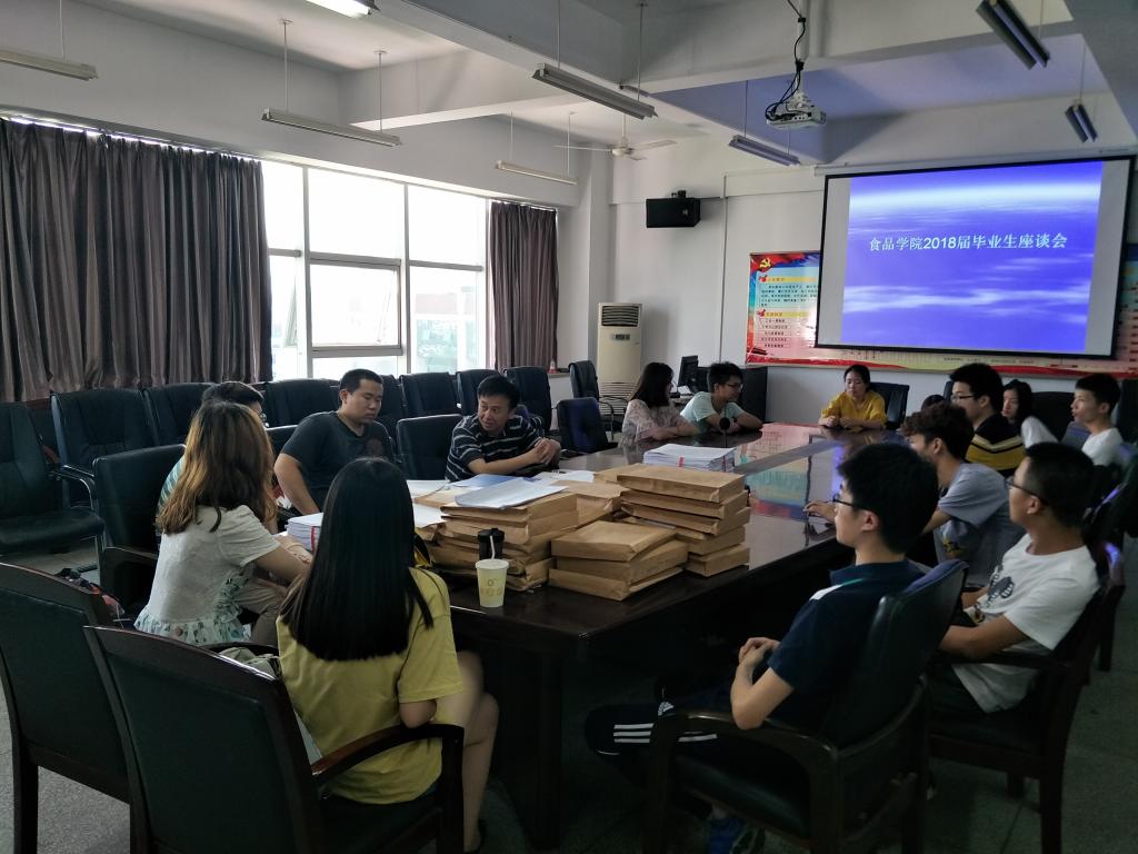 6月15日下午,食品学院在KJ809召开2018届毕业生座谈会听取毕业生关于母校改革发展的意见建议,向广大毕业生表达母校诚挚的祝福。食品学院党委书记王宏光老师主持会议,14级毕业生干部和学生代表20余人参加了座谈。