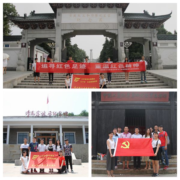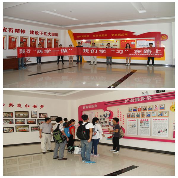 本报讯(食品学院 许敏武 熊偲蓓 摄影 周勇俊)为积极贯彻我校“明德 积学 砺志 笃行”校训精神,积极响应暑期“三下乡”社会实践活动,引导青年在服务基层中提升自我,认知民情,传承爱党爱国情怀。食品学院暑期社会实践团队在学院分团委书记许敏武带领下,于7月11日-7月12日前往红安县围绕“学习创新创业,追寻红色记忆,服务红安老区”的主题开展了经济开发区参观、大学生创业红安佰昌孵化基地合作、革命烈士纪念园参观、七里坪长胜街走访等一系列特色鲜明的暑假社会实践活动。
