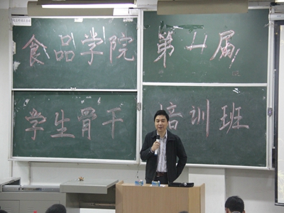 10日下午14:00,食品学院分团委书记许敏武以《当代大学生干部组织认同探究——以武汉轻工大学食品学院学生干部培训问卷调查为例》的调研报告为例主要讲解了学生组织的功能及实现,主要包括学生组织的基本概念、学生组织价值取向、团委老师与学生干部的关系、学生组织在实现其功能中主要要考虑的因素四个方面的内容,许老师着重介绍了学生会、共青团、学生社团几个学生组织的不同与区别。