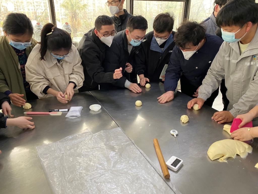 实习期间,经过公司领导对实习日程精心安排和设计,同学们在相关部门负责人的带领下,先后来到中粮集团清理车间、制粉车间、配粉车间、研发部、品控部等工段进行实习,实际掌握了从小麦原粮到成品面粉包装的全过程,动手制作了以客户需求为导向的馒头、面包等产品,熟悉了原粮及产品检验的要求及操作规程,总结了各自的收获与心得体会。在益海嘉里实习期间,同学们先后来到米厂、粉厂及油厂,系统学习了水稻收储、加工、包装的整个生产流程,了解了米糠油的生产工艺及米厂各副产物的具体去向,比较了不同企业面粉生产设备与厂房设计的异同。