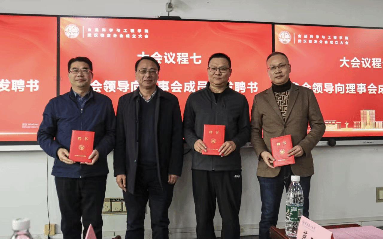 新任会长、秘书长表示,定不辜负学校和学院信任,吸纳更多的校友加入校友会这个平台,在服务国家和社会、回馈母校的过程中让轻工大食品学院的美誉熠熠生辉。学院教师代表舒在习、张维农和刘刚纷纷表示,希望广大校友常回家看看,愿意与校友建立深厚的友情和互帮互助的关系,推动校友资源与母校资源的相互转化与协同发展,把武汉校友分会建设好、发展好。