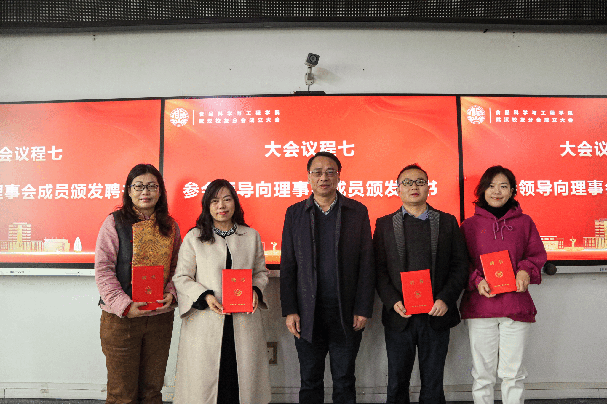 会议通过了食品学院武汉校友分会第一届理事会会长、副会长、秘书长和副秘书长建议名单。副校长侯永清向新任会长王雪芹授会旗,向第一届理事会成员颁发聘书。