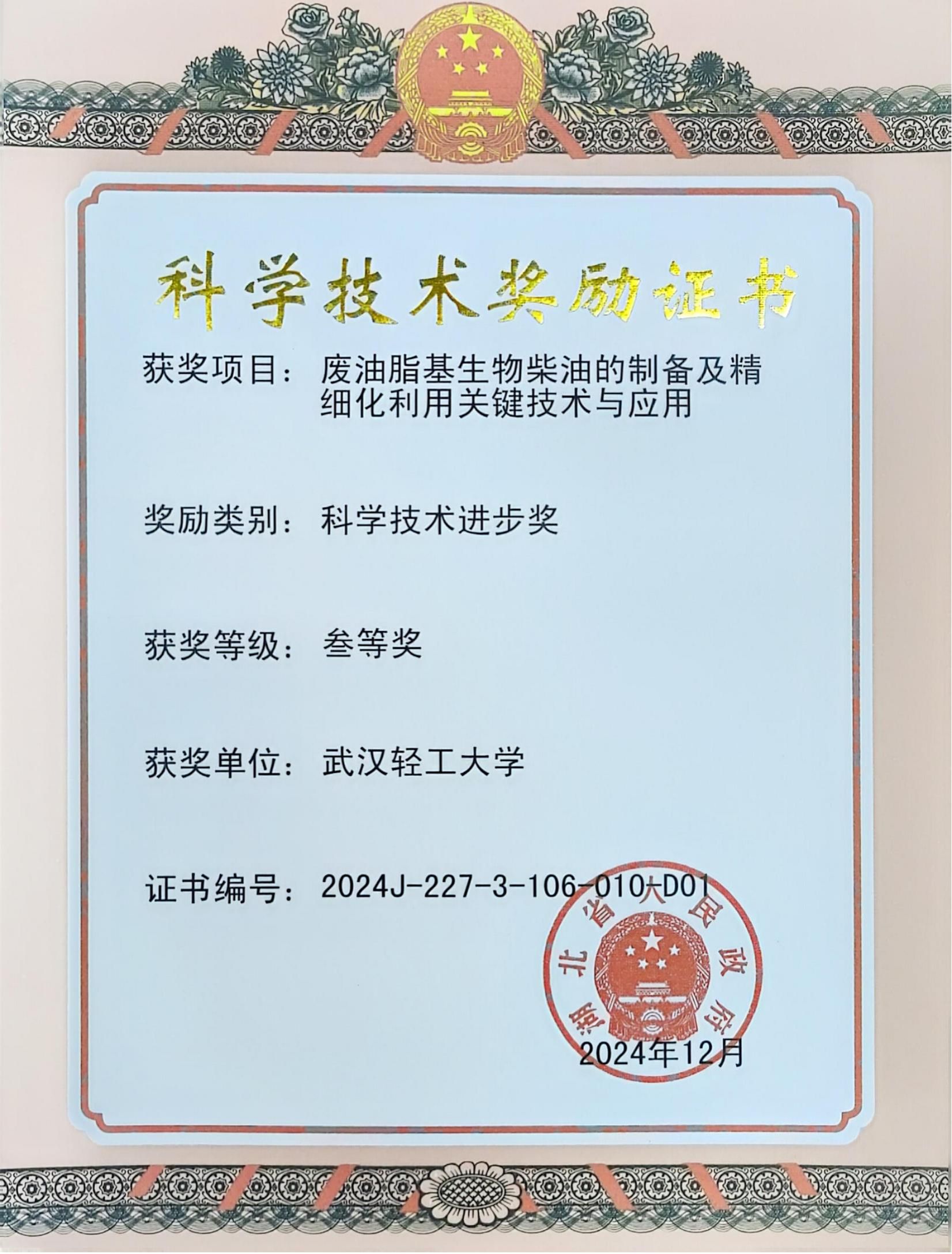 2024年贺军波荣获湖北省科学技术进步三等奖