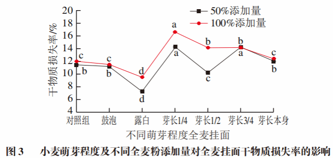 2.2 全麦挂面干物质损失率