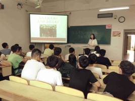 大会伊始,金老师指出食工与其他专业的联系与区别, 以及考研究生和考公务员的意义所在,介绍了其对应的工作要求、就业前景,走在同一条大路上,如何在专业和非专业两个岔路口前做出选择。一再强调人要清楚自己的短板和特长、扬长避短,做任何事不能犹豫、不能拖延,对"优秀"的定义提出了自己的见解,即社会上没有绝对的优秀,对一个人来说只有合适与适合可言。她并没有引用过多抽象的概念,而是从现实的角度,结合亲身经历和周围朋友的故事向同学们介绍了该专业与非专业该走的几条路,以及食工专业各类企业单位的薪酬待遇、发展情况、竞争优势,解决了同学们心中存在的诸多疑问,动员同学们坚定专业自信心,学会确定并分步实现长期目标,尤其提醒同学们着重培养个人素质,扩大自己的朋友圈。最后她向我们口述了个人简历,从中足以看出她的为人谦逊而亲切,亦师亦友,令人印象深刻。